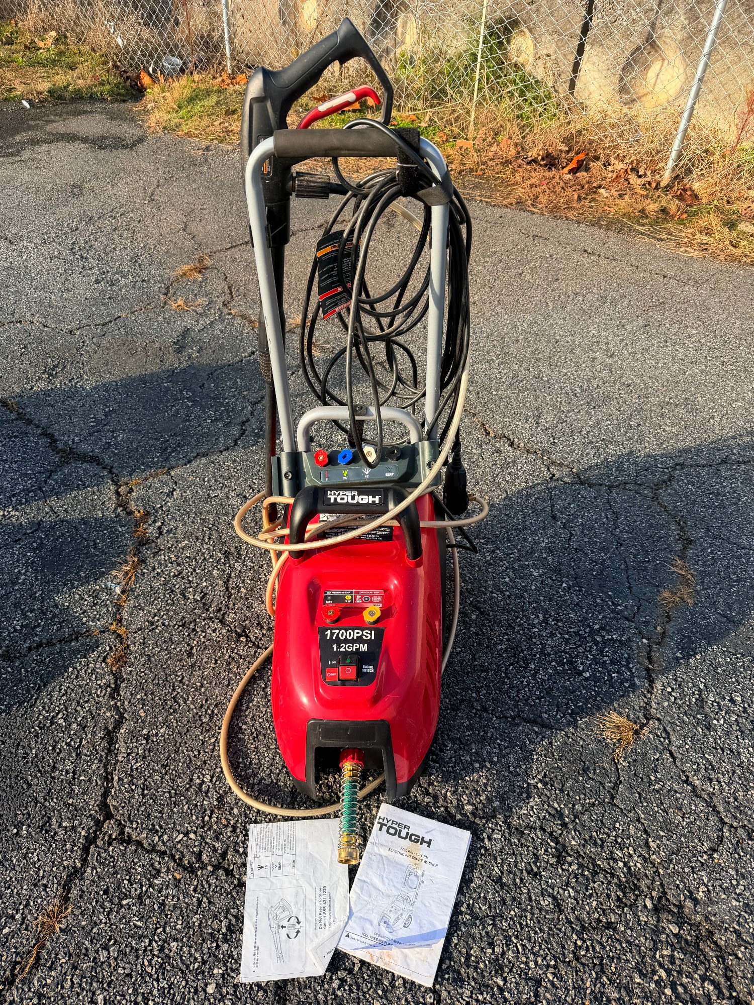 Ready to reclaim your patio from the clutches of dirt? This Hyper Tough electric pressure washer is here to help! Sporting a respectable 1700 PSI, this grime-busting machine comes with various nozzle attachments to tackle any cleaning job. It includes the original manual as well. Grab it and prepare to be amazed at how clean your stuff can be. See photos for condition and details.