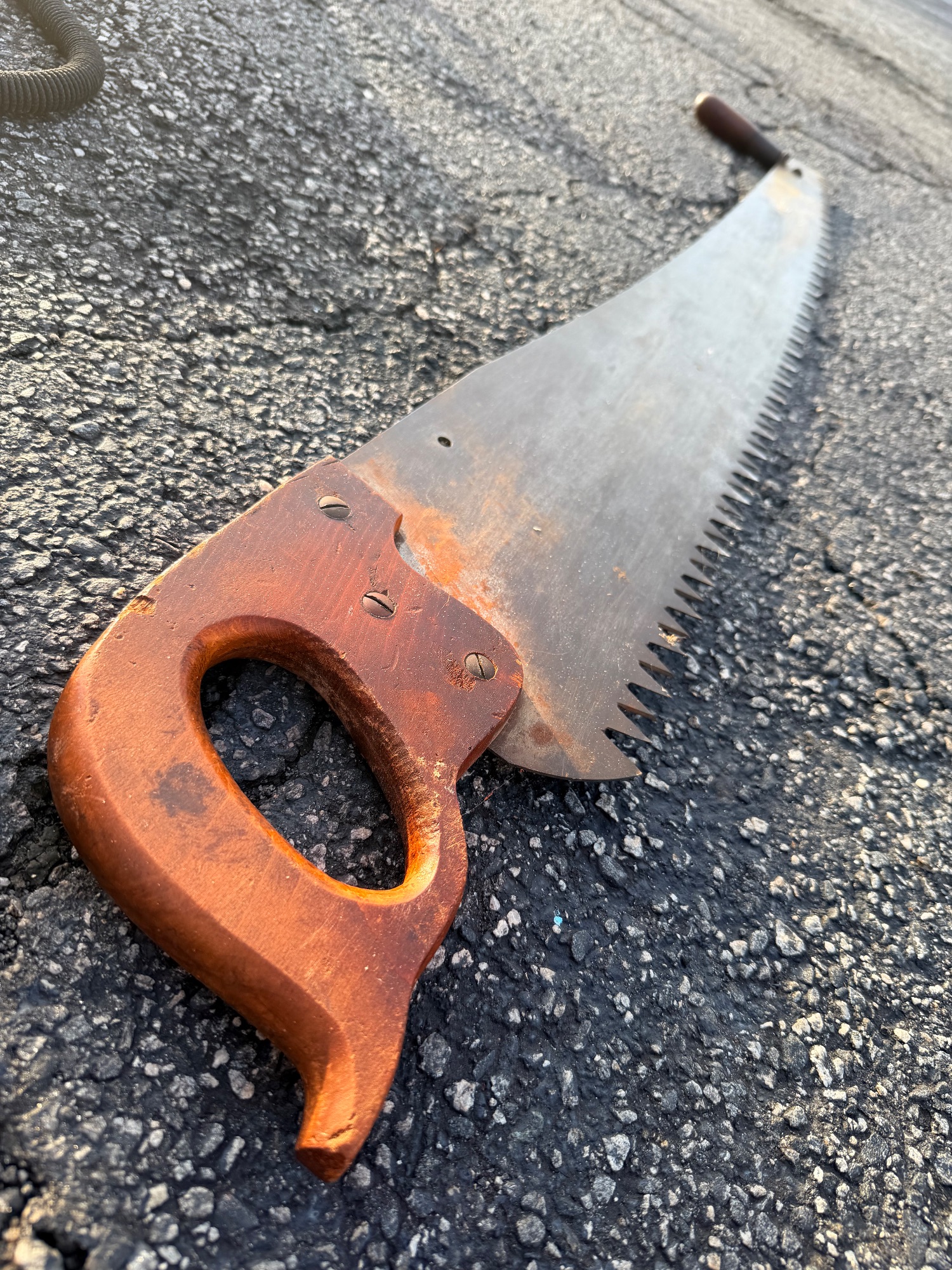 Get ready to rumble with this vintage two-person timber saw! This saw has a handle at each end, so all you need is a friend to get to sawing. Please see photos for condition and details.