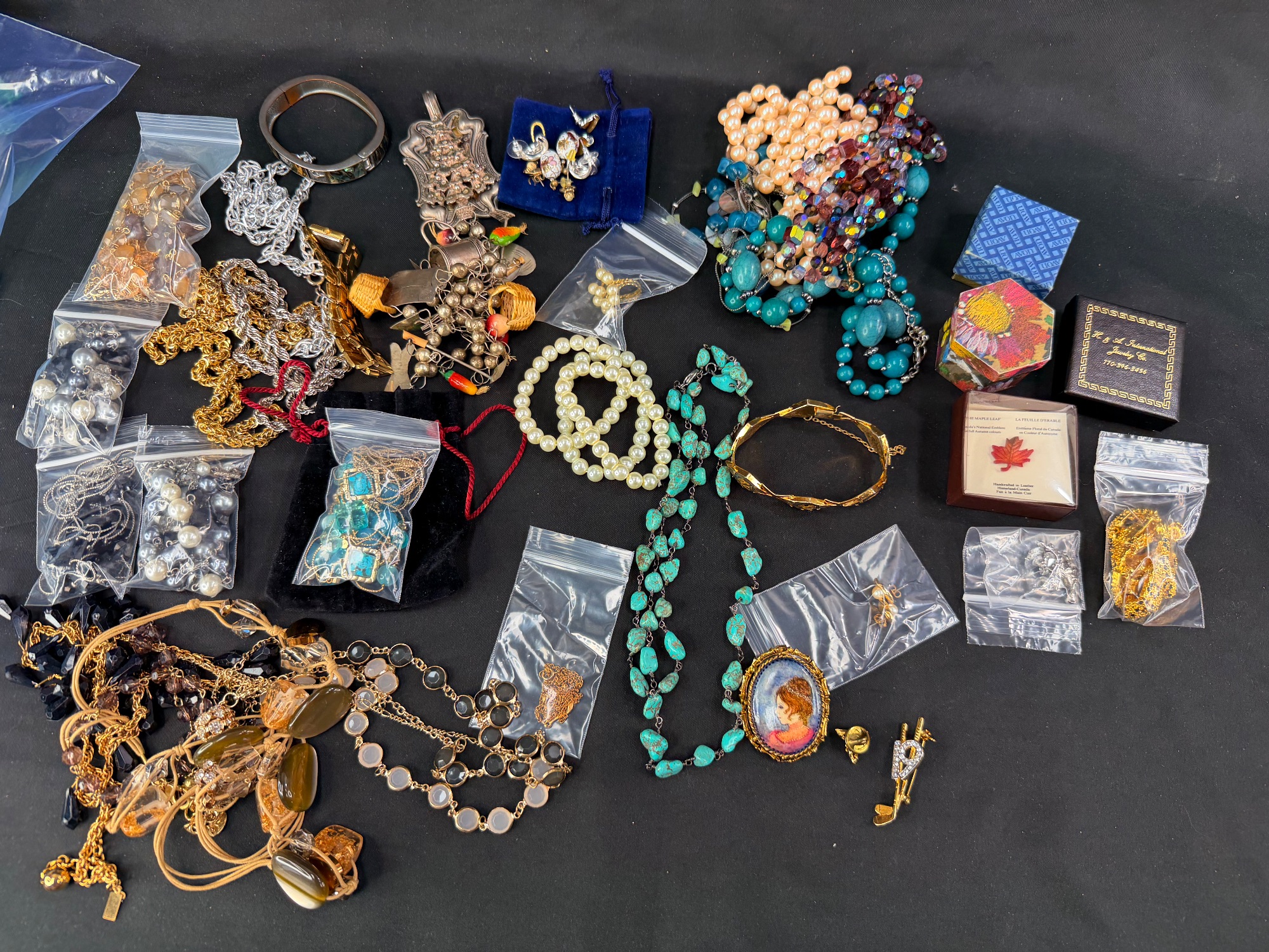 This lot includes jewelry from fashion lines, such as Liz Clairborne, Monet, Pulsar, Chico's, and more.