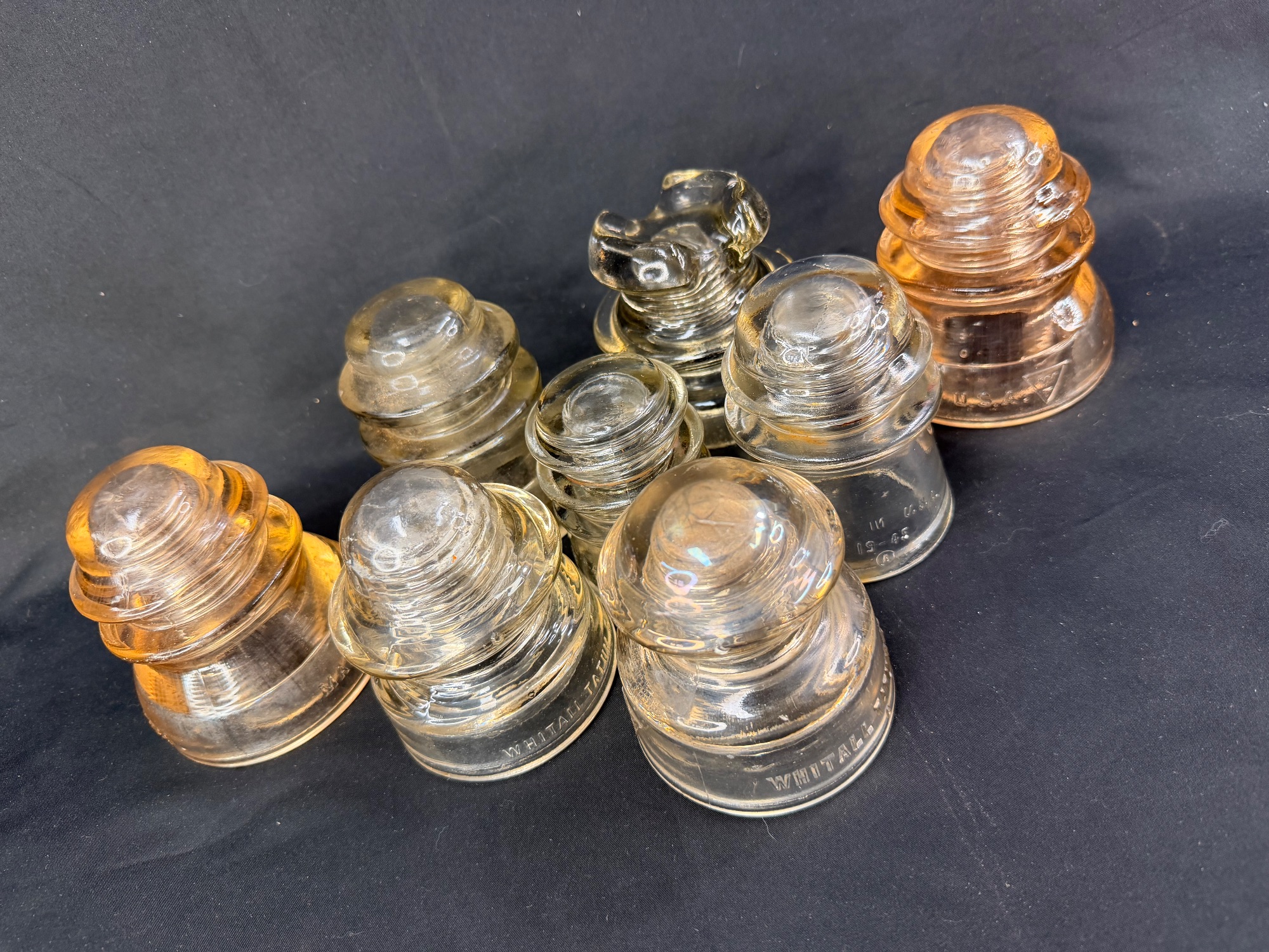 Ready to add some spark to your collection? This lot features a selection of glass insulators, including those with the 'WHITALL TATUM CO.' mark! From clear to a fetching amber hue, they're like little glass hats for electricity. See photos for condition and details.
