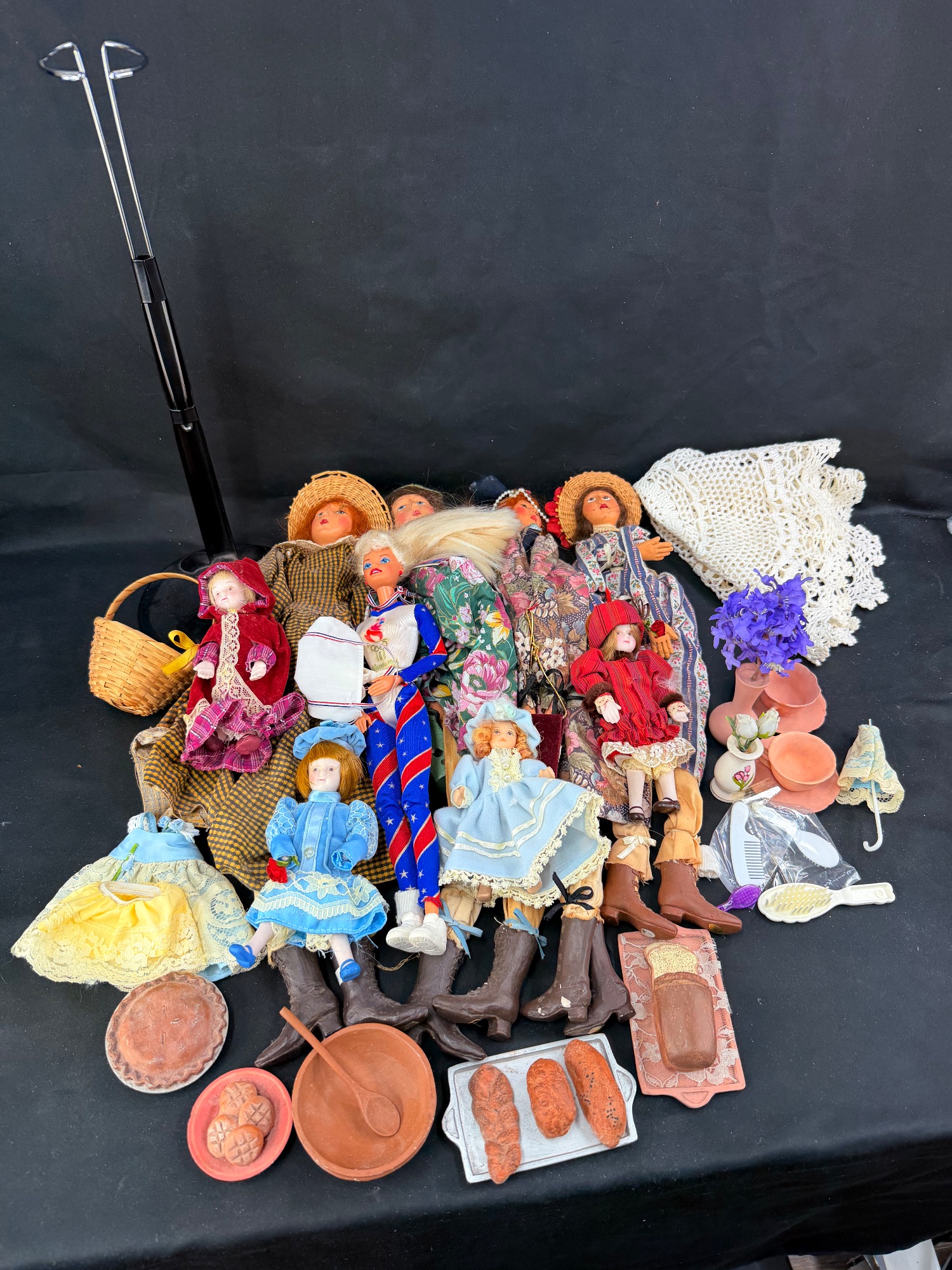 Dive into a treasure trove of dolls and accessories! This delightful assortment includes charming porcelain dolls dressed in delightful outfits, and even a patriotic Olympic Barbie. But wait, there's more! Discover doll clothes, miniature tea sets, and other intriguing doll accessories. A delightful collection ready to bring joy and perhaps a touch of whimsical chaos to your collection. See photos for condition and details.
