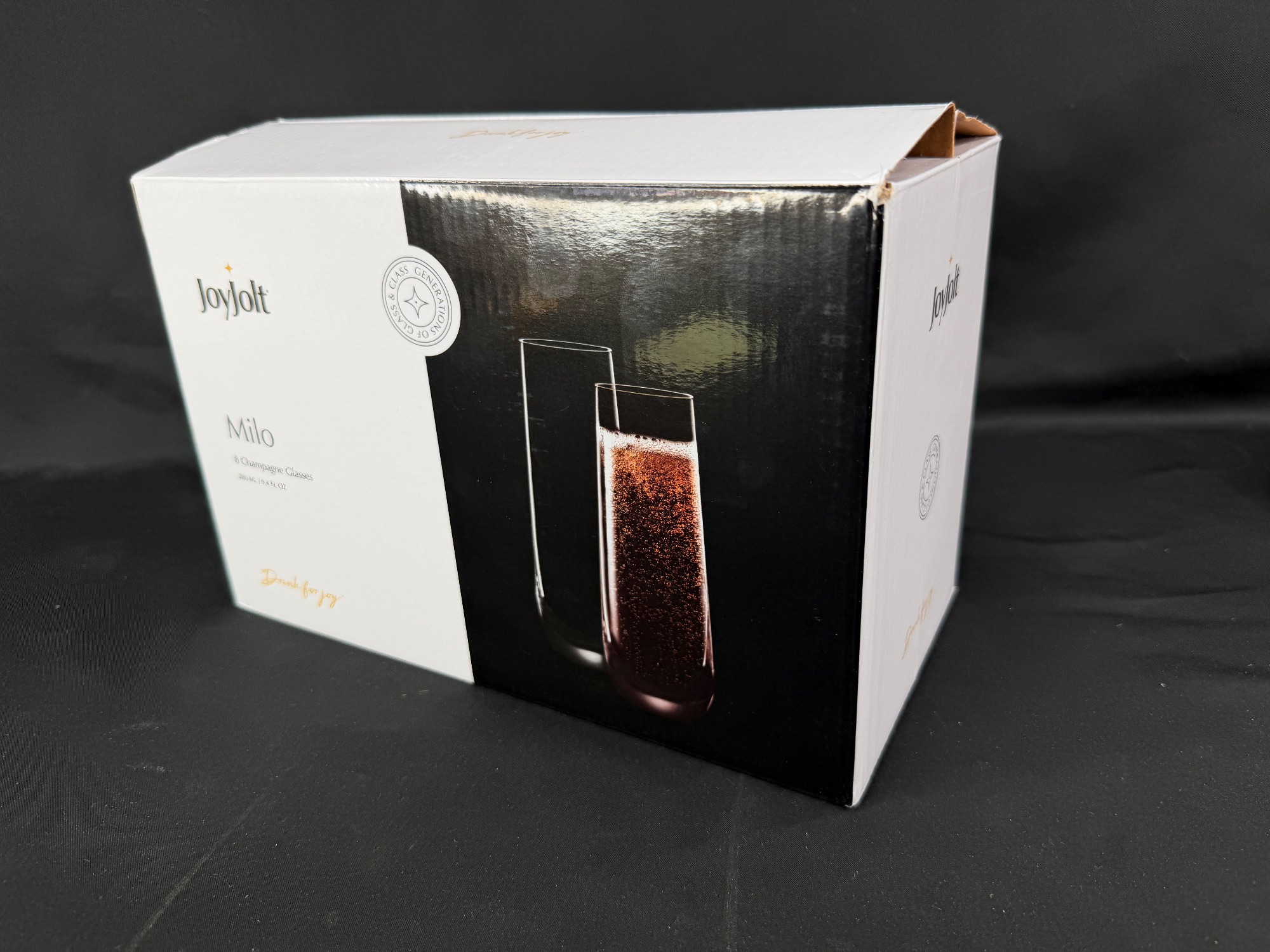 Pop the bubbly, it's time to celebrate with this set of JoyJolt Milo champagne glasses! This set of glasses aims to add a little luxury to any occasion. A classic design for celebrating in style. See photos for condition and details.
