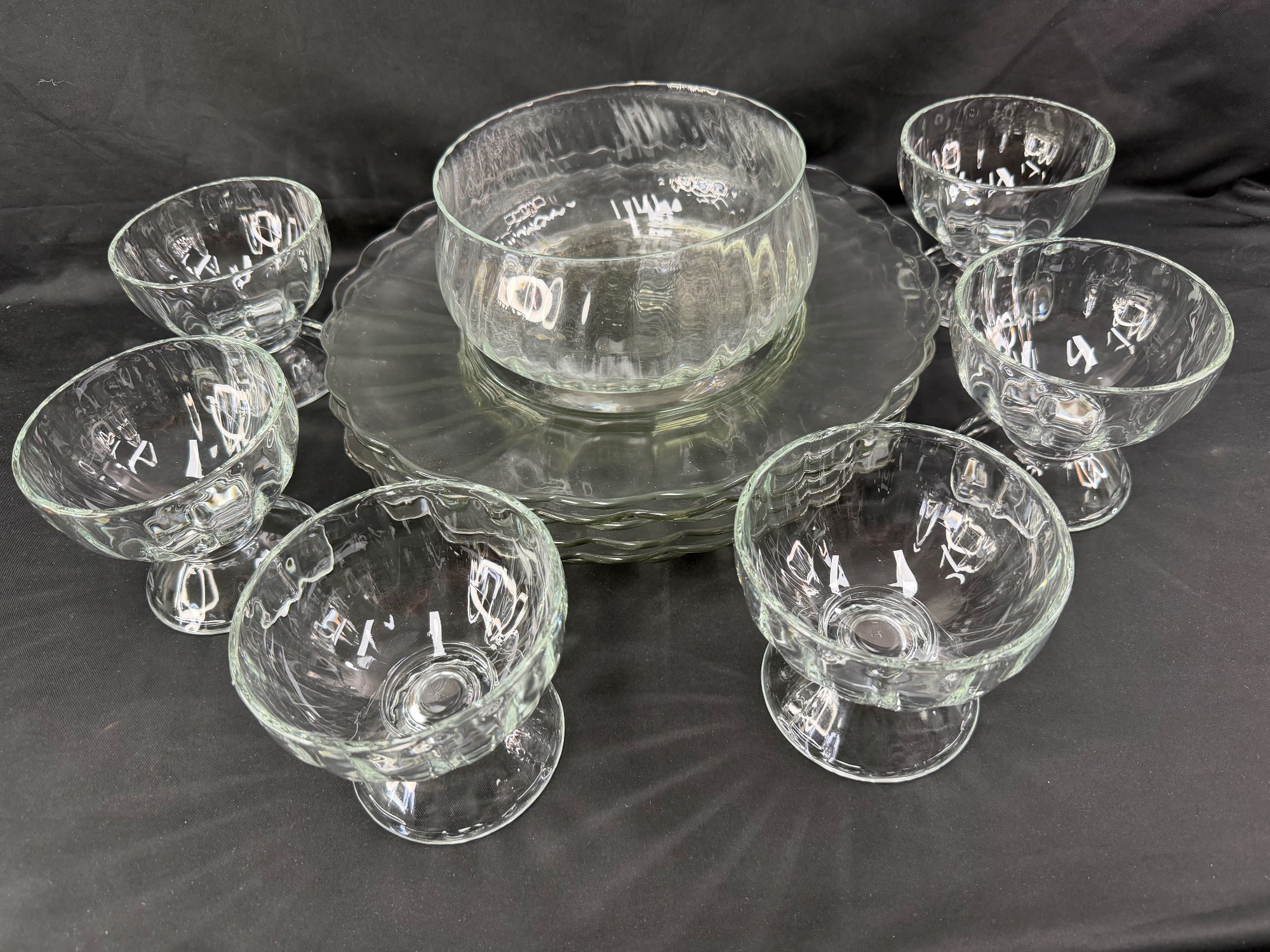 Get ready to indulge in some sweet treats with this charming glass dessert set! This collection includes pedestal sundae cups, bowls and plates, perfect for serving up your favorite desserts in style. From sundaes to trifles, this set has you covered. See photos for condition and details.