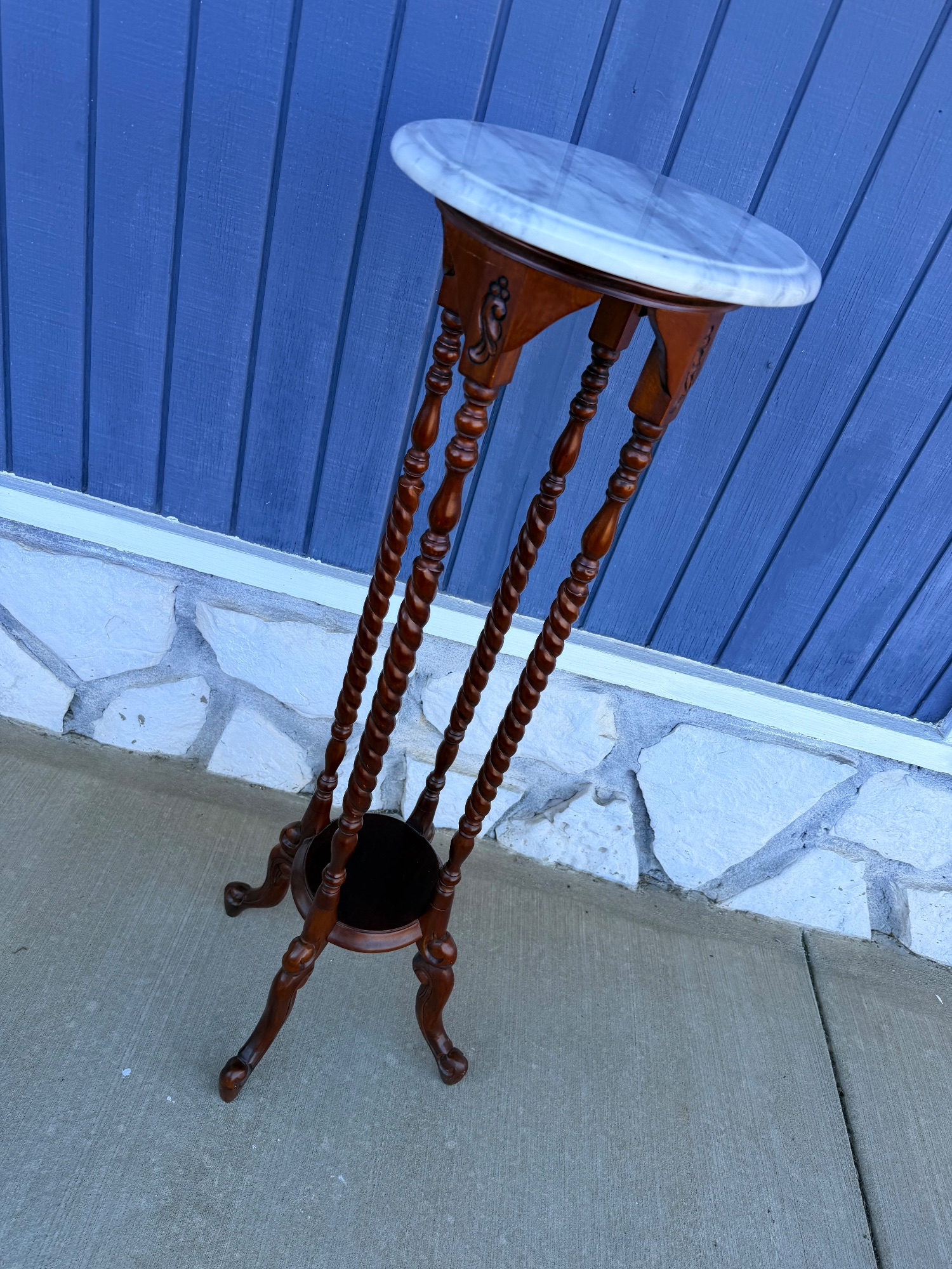 Elevate your ferns with this stately plant stand! Featuring a marble top and elegant, spiraled legs, this piece promises to bring a touch of classic charm to any room. Because your plants deserve the best. Please review the photos carefully for condition and details.