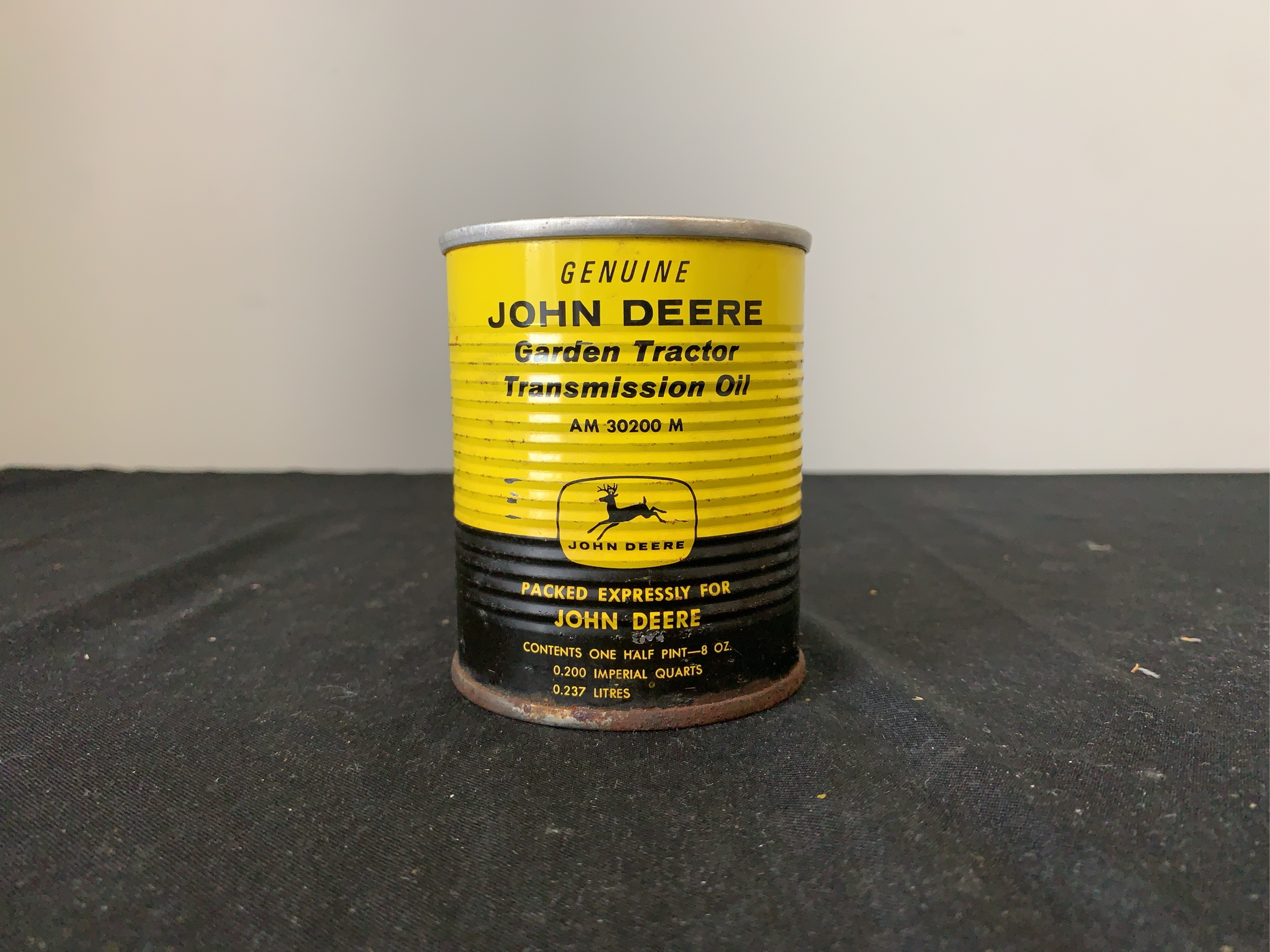 John Deere garden tractor transmission oil 1/2 pint can. Shows wear and rust.