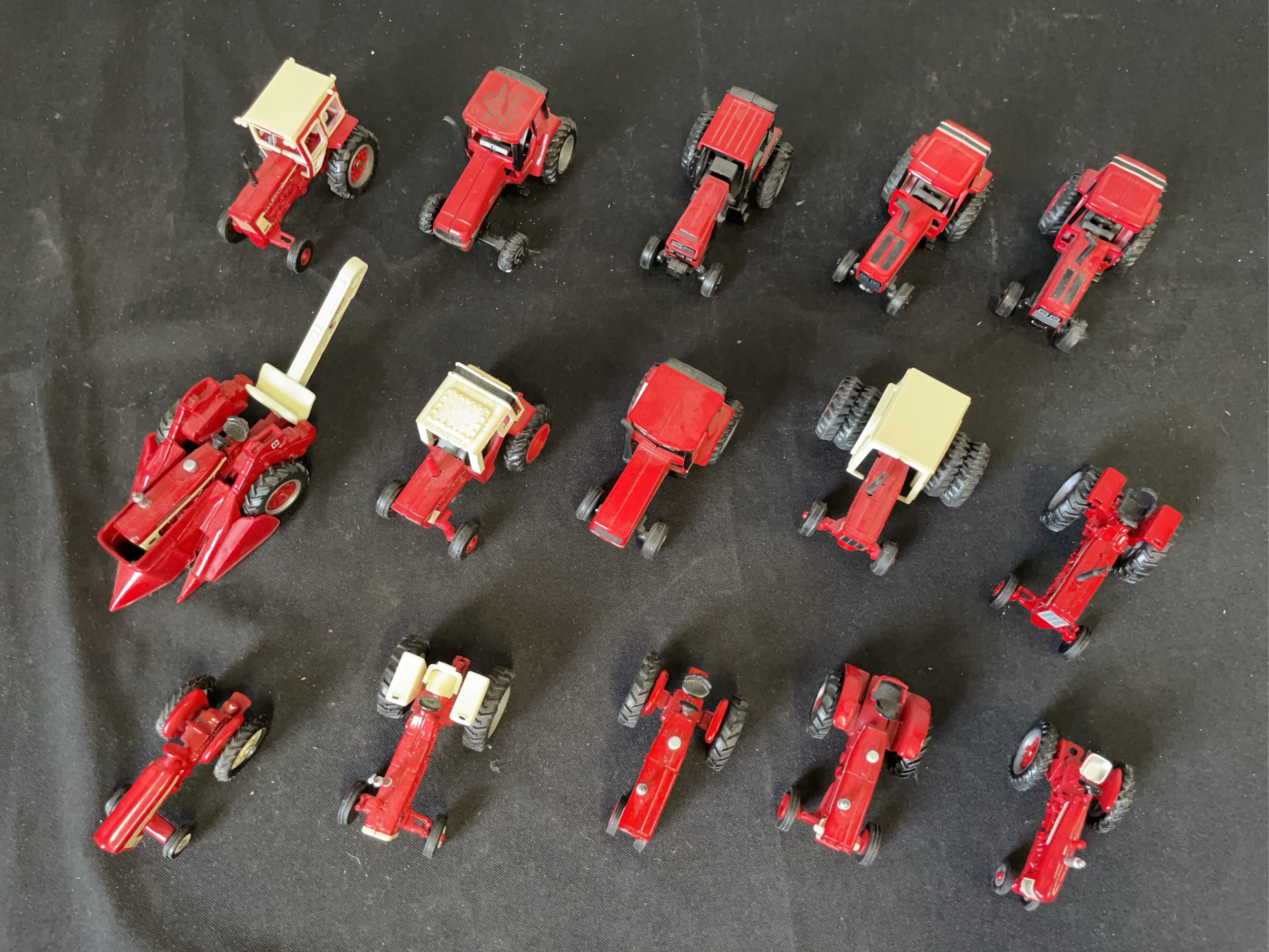 Lot of fifteen 1/64 scale Case-IH + IH tractors. Varying condition.