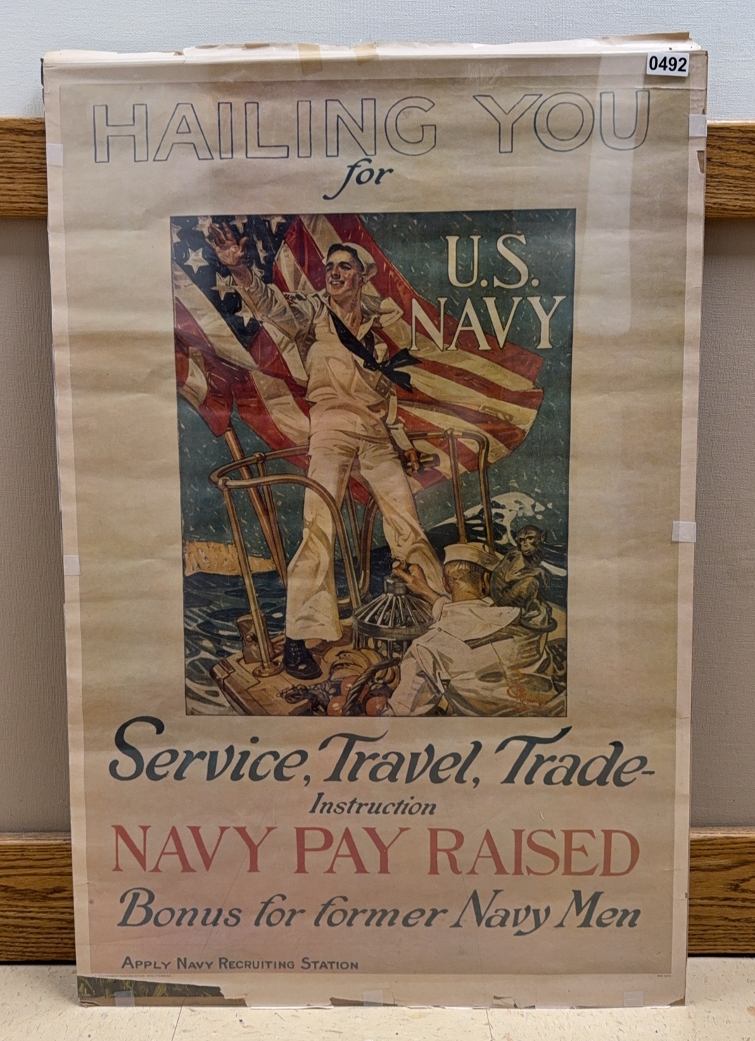 Vietnam War era Navy recruiting poster from 1973 highlighting increased military pay. These posters captured the transition period as America ended the draft and moved to an all-volunteer force. Cultural artifact from a pivotal moment in military history. Measures 24" x 36"