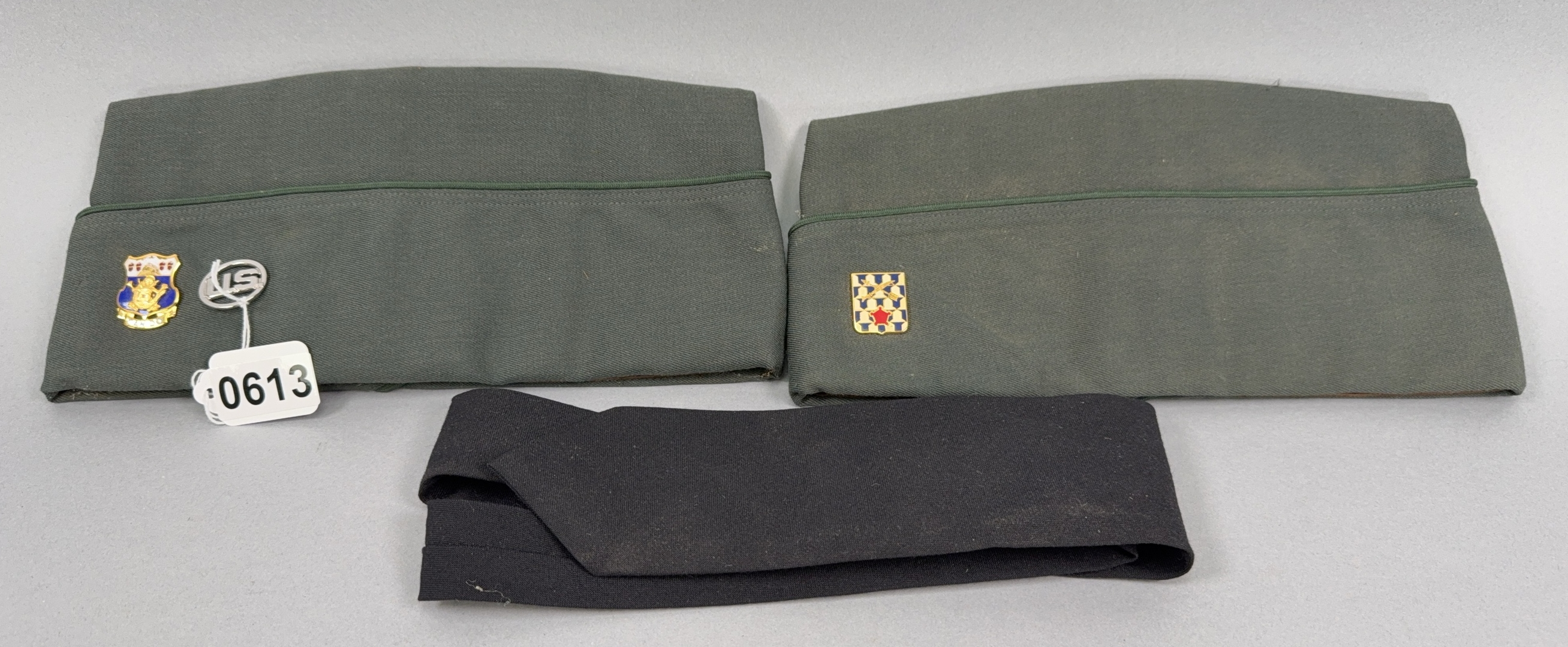 Pair of U.S. Army Garrison Caps with Insignias & Black Tie