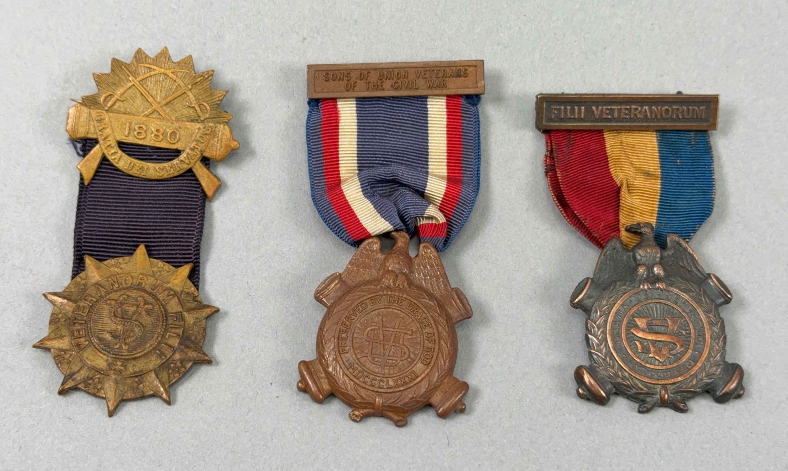 Sons of the Union Veterans of the Civil War Membership Badge & 1880 G.A.R. 13th Encampment Badge