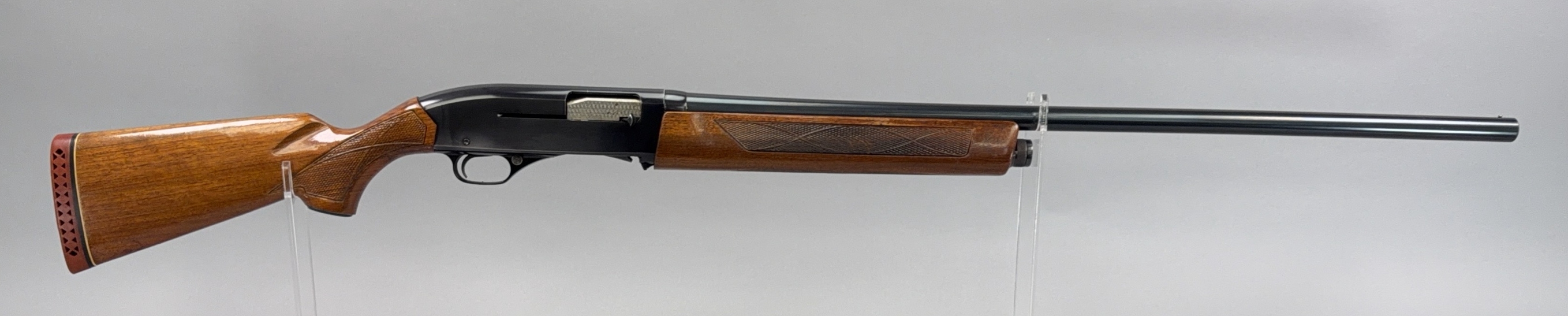 Winchester Model 1400 MK II semi‑automatic shotgun in 12 gauge with ventilated recoil pad and checkered walnut pistol‑grip stock and forearm. Blued receiver and 28" barrel retain a high‑gloss finish with only minor handling marks, and the gold‑tone trigger adds a touch of contrast. Magazine cutoff and cross‑bolt safety are present; action cycles smoothly and locks properly