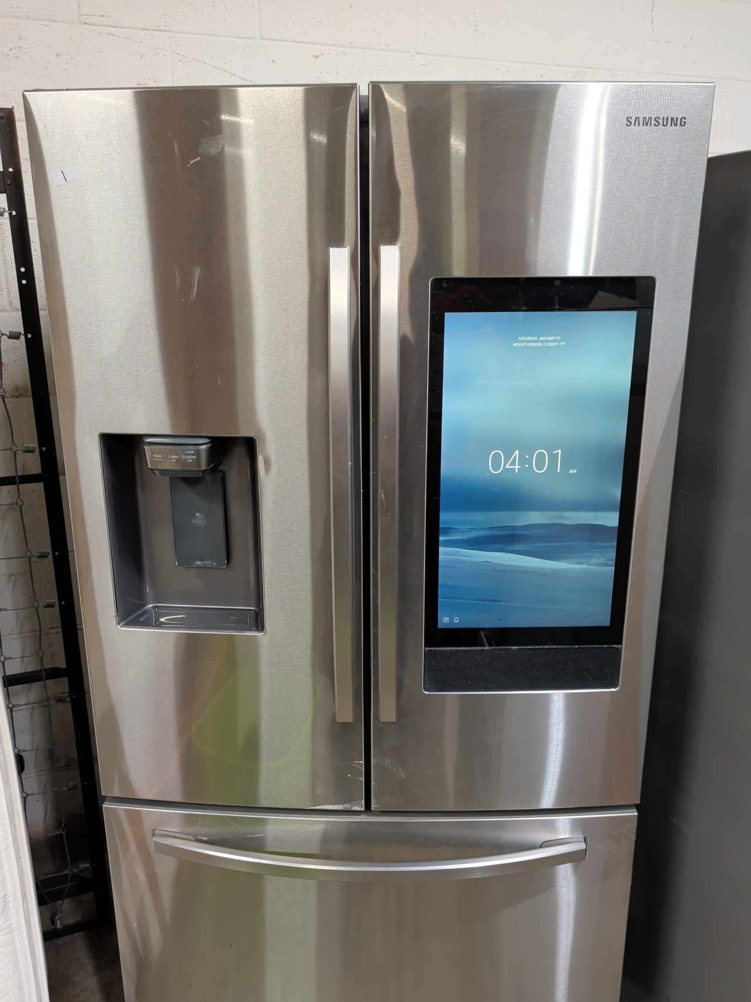 SAMSUNG 26.5 CUBIC FOOT STAINLESS STEEL REFRIGARATOR 3 DOOR SMART HUB TOUCH SCREEN WATER AND ICE MAKER IN DOOR - 36X32X70