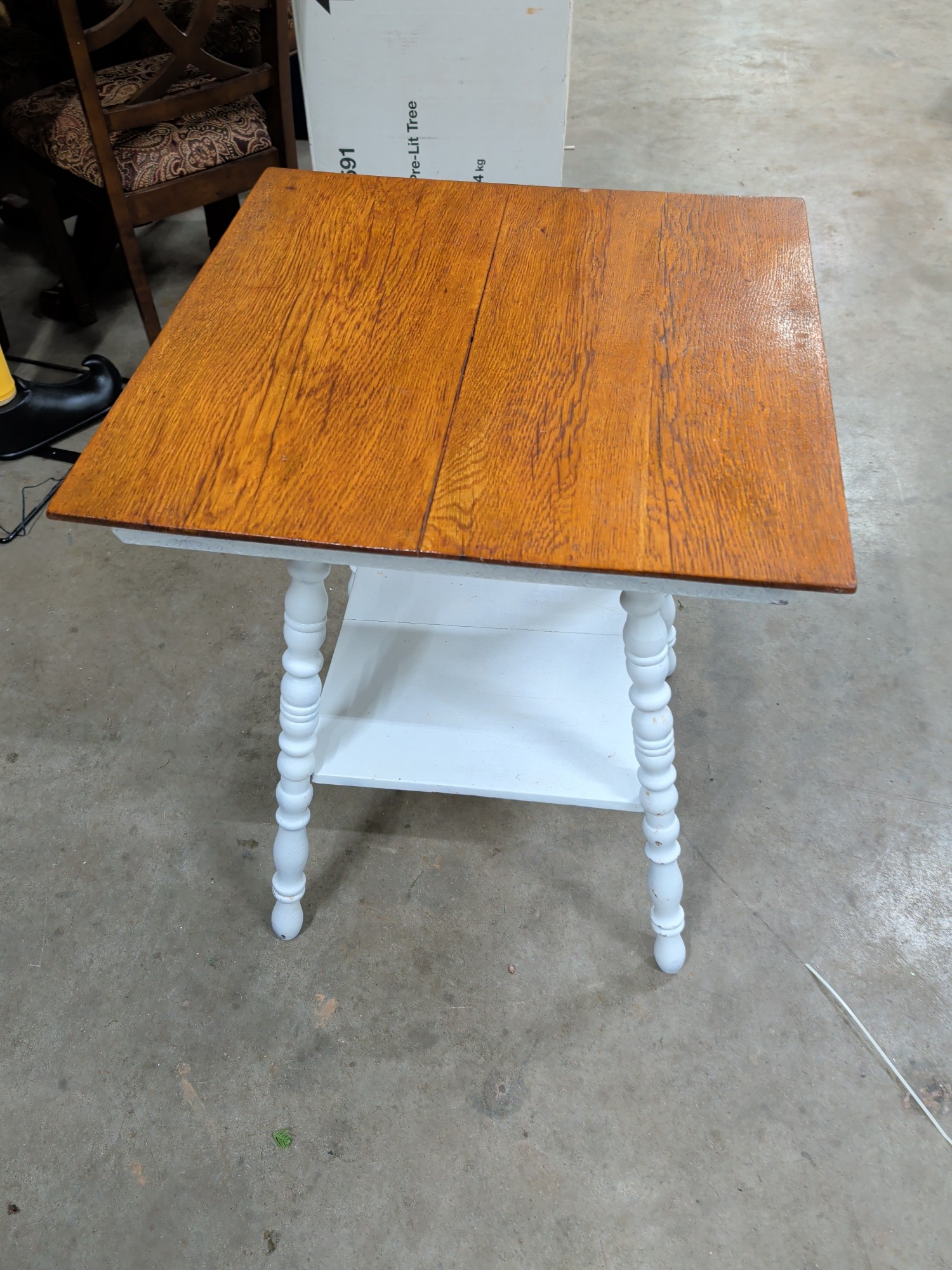 OAK AND PAINTED WHITE SPINDLE LEG SIDE TABLE 24X24X29