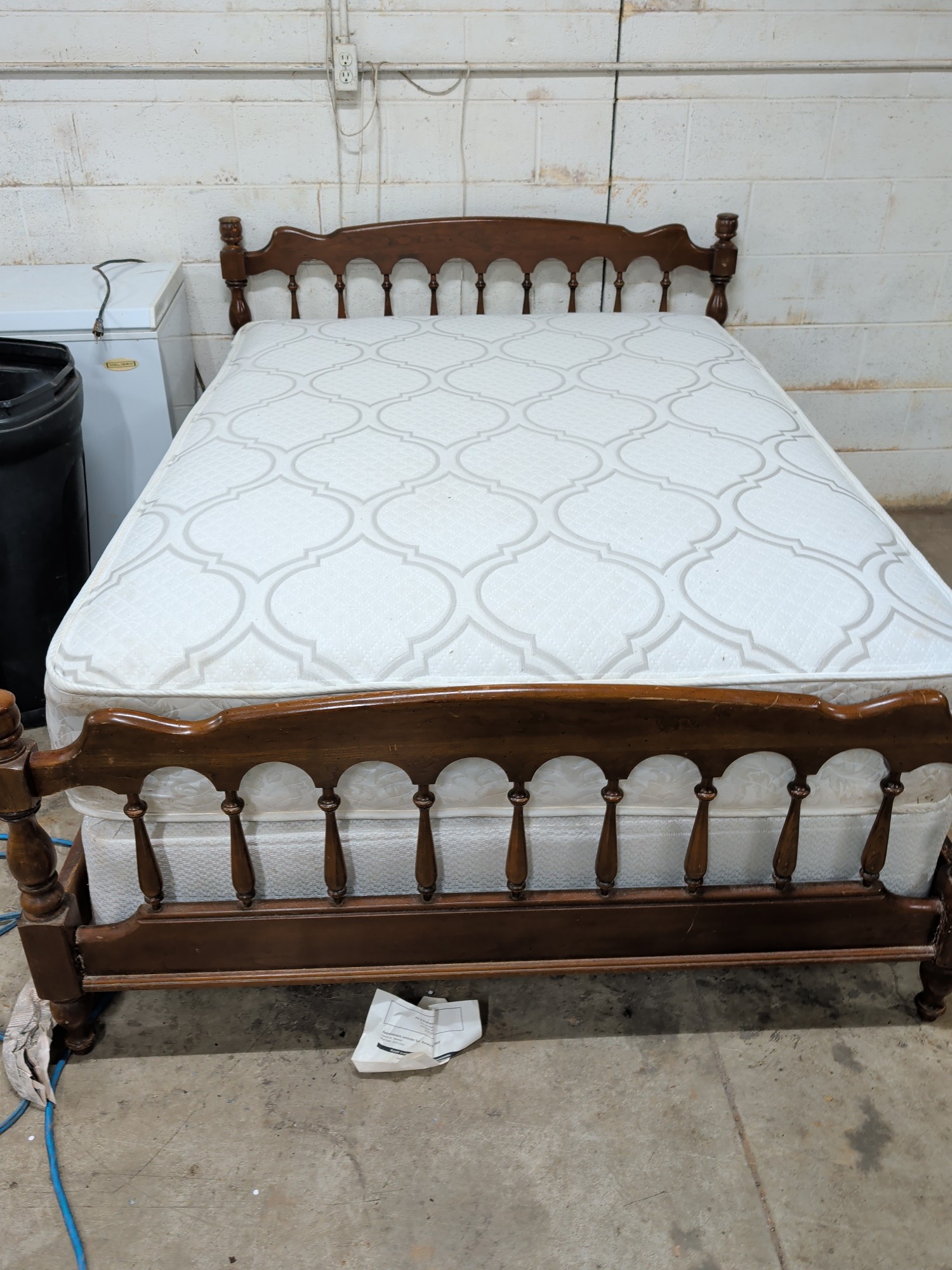FULL SIZE BED - HEADBOARD AND FOOTBOARD WITH RAILS BOX SPRING AND MATTRESS WILL BE GIVEN TO BUYER IF WANTED