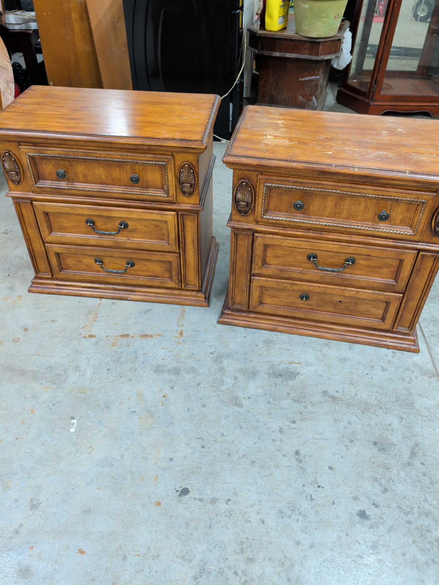 2 NIGHTSTANDS 30X17X28 HAS FINISH SCUFFS AND 1 IS MISSING A DRAWER HANDLE