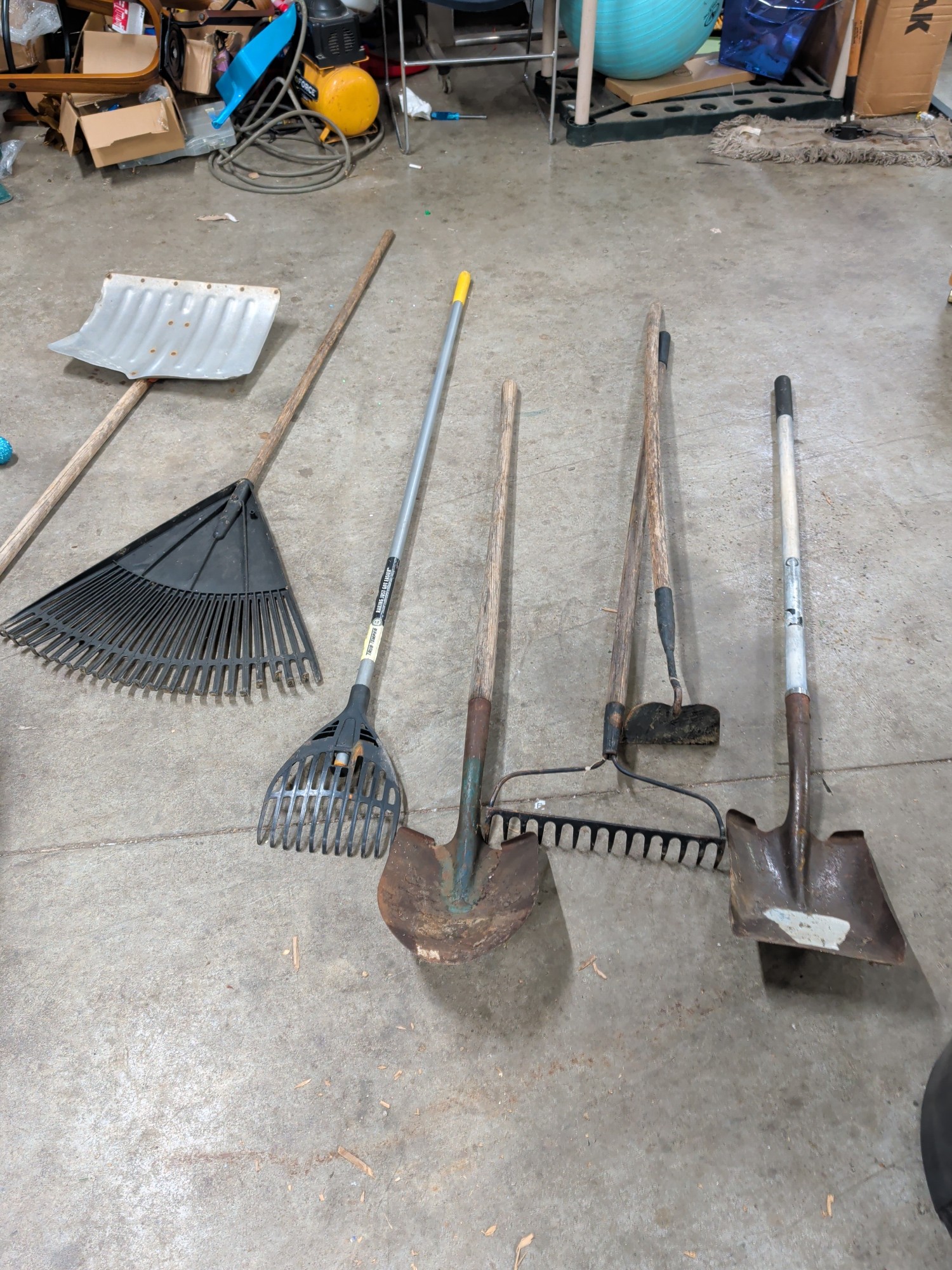 RAKE - ROUND AND SQUARE NOSE SHOVELS - HOE - LEAF RAKES AND SNOW SHOVEL