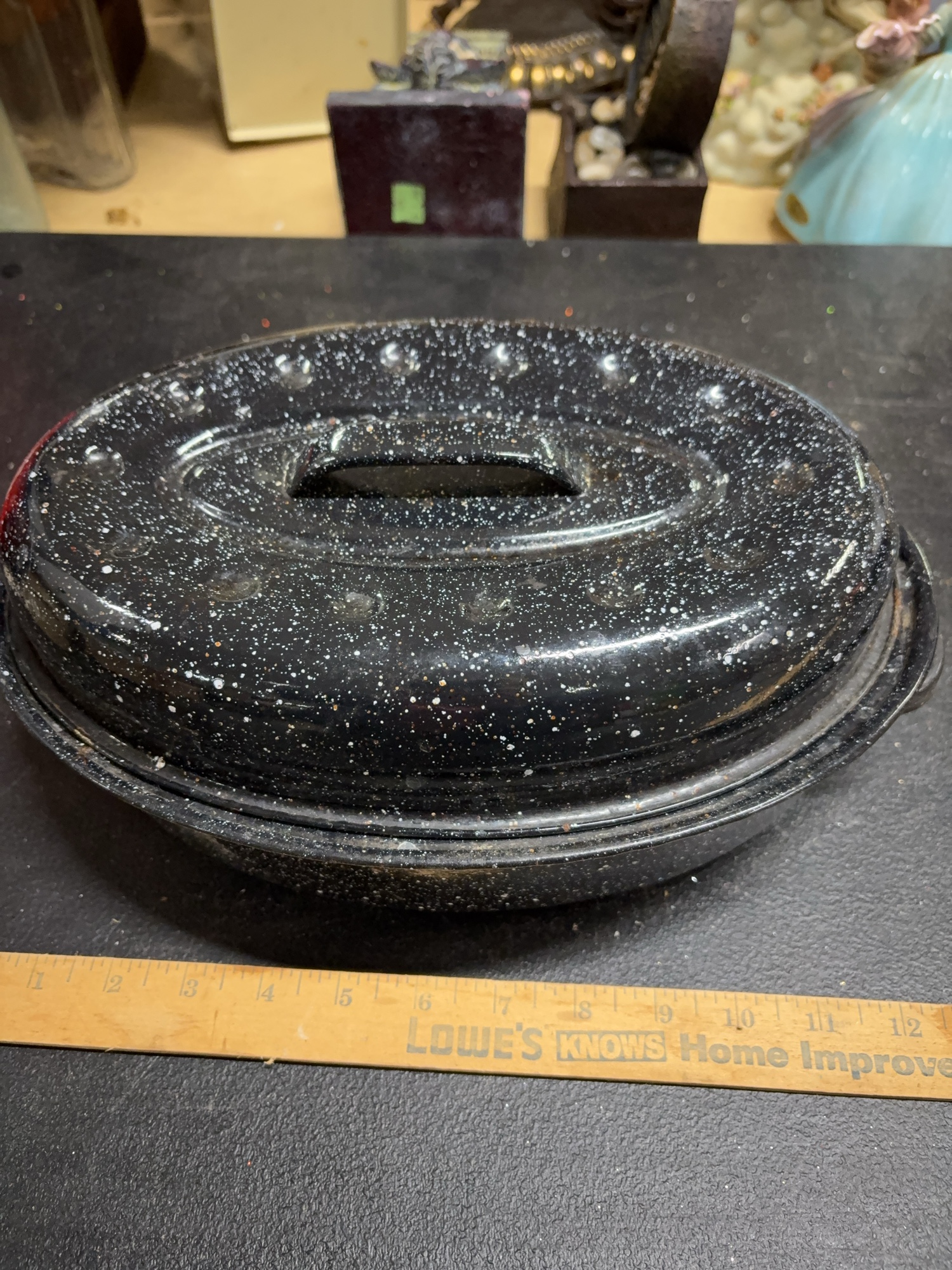 BLACK SPECKLED- ENAMEL ROASTING PAN- 12” LONG 7” WIDE-