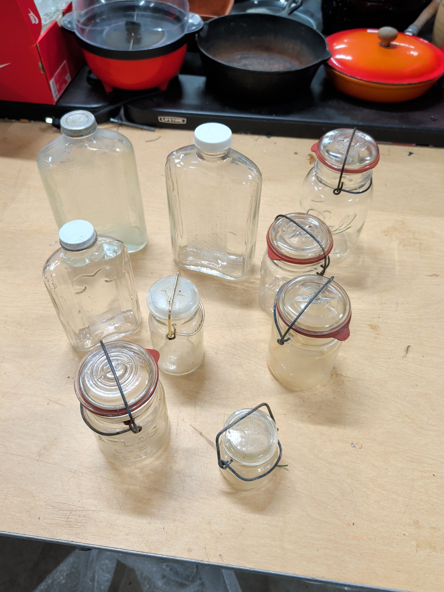 VINTAGE BALL AND ATLAS JARS AND GLASS JUGS