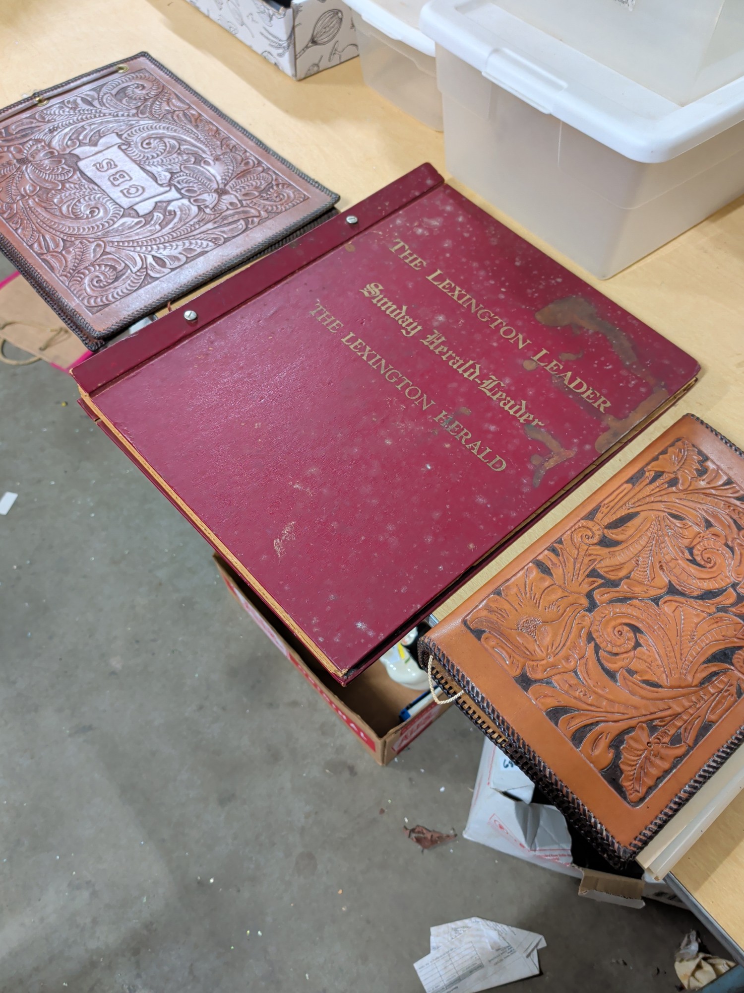 VINTAGE LEATHER BOOK COVERS AND LEXINGTON HERALD LEADER