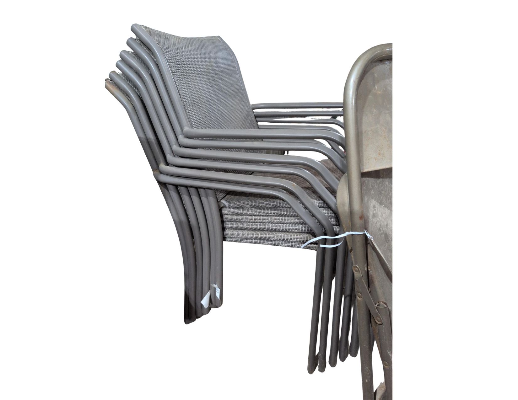 6 Stackable Patio Chairs, 1 Metal Folding Chair