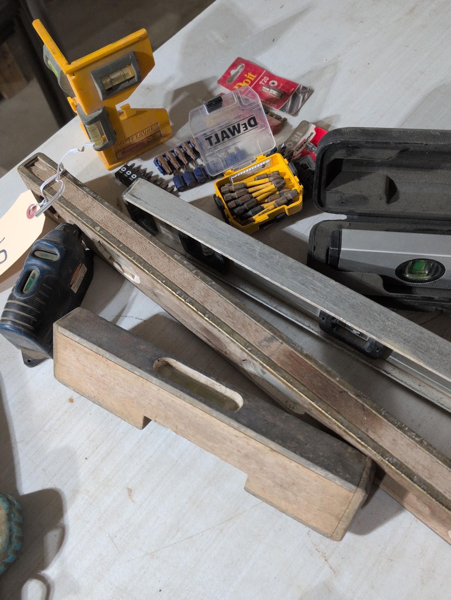 4 Levels, 1 Corner Level, Assorted Screw Bits, Lazer Level