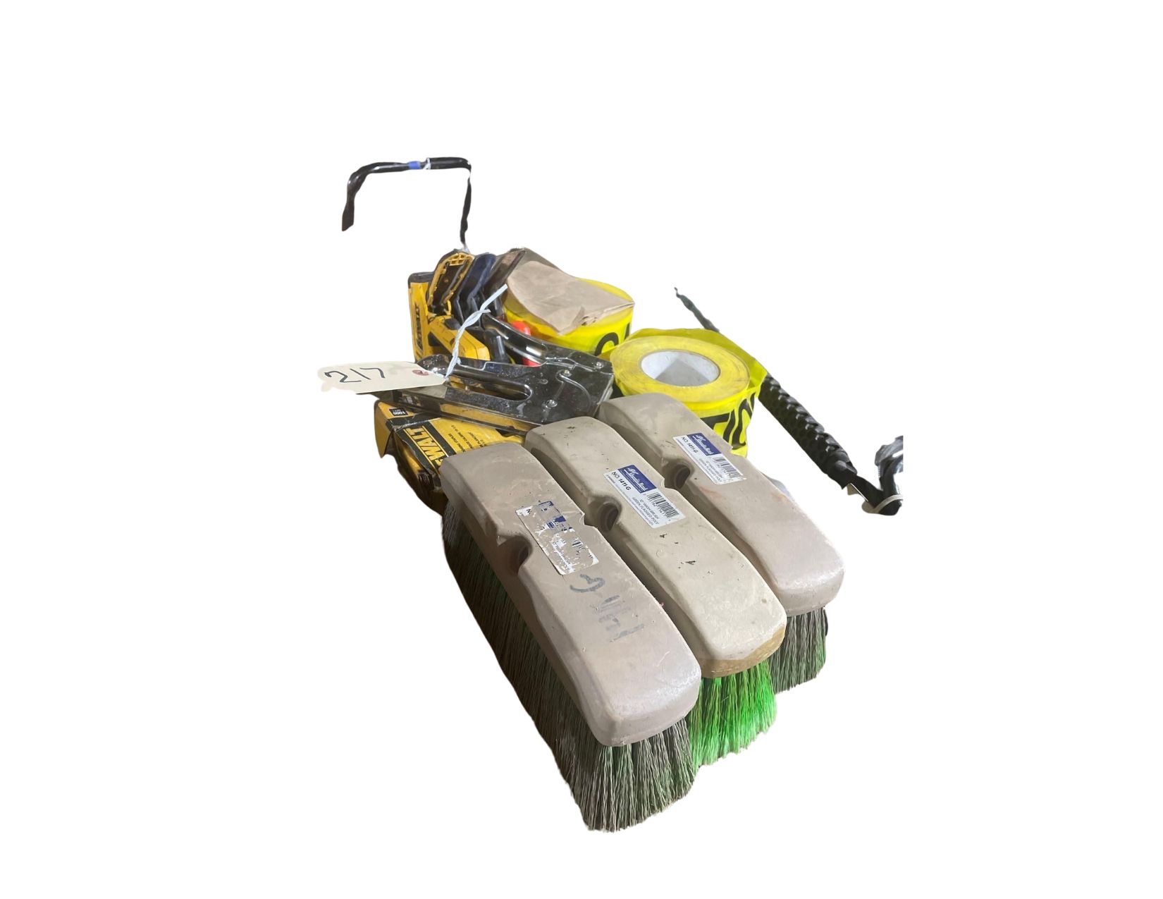 3 Brush / Broom Heads 10"x2.5"x4", 2Rolls of Caution Tape 4 Staplers