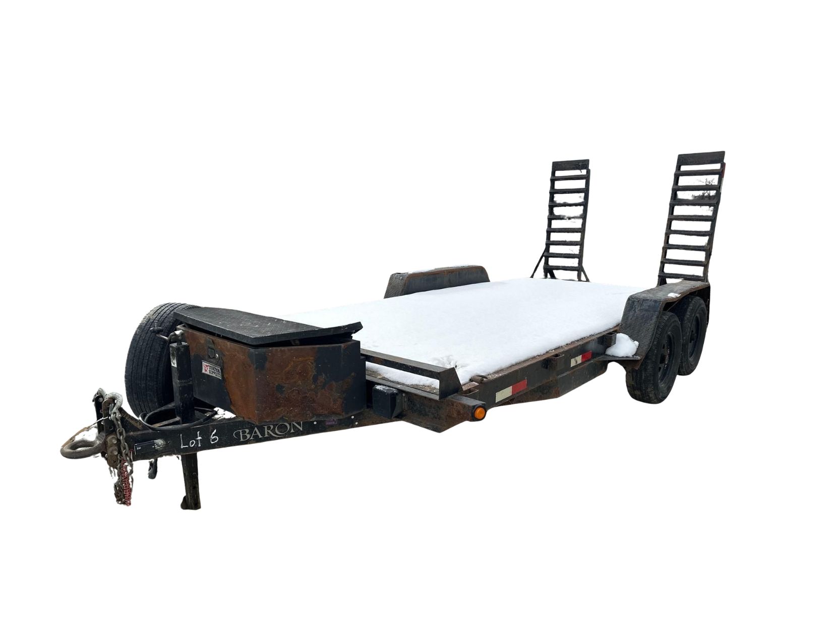 Baron 16' Tandem Axle Flatbed Equipment Trailer - 2/26 Inspection - Loading Ramps - Tractor Supply Tool Box - Spare Tire