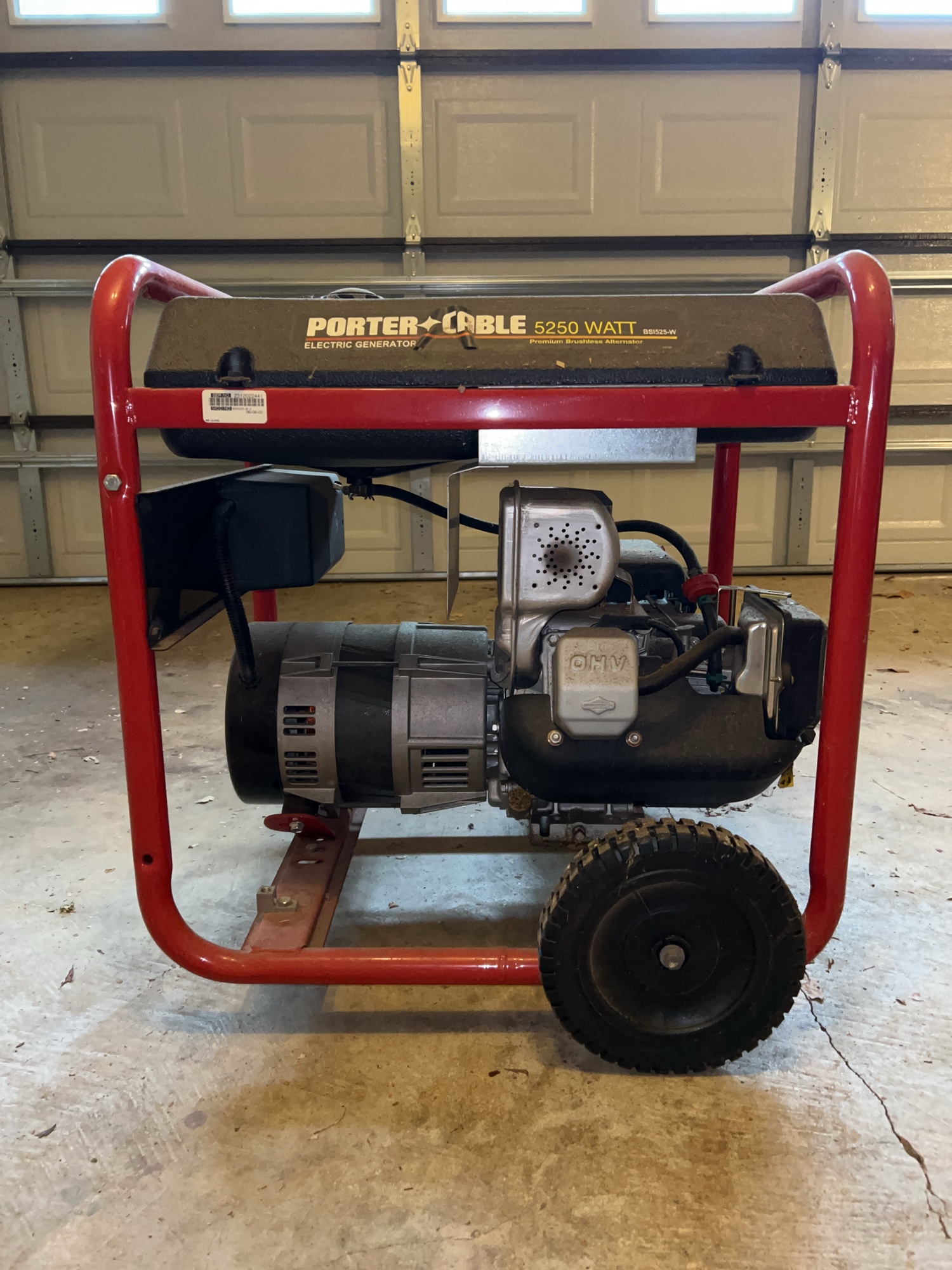 Porter-Cable 5350 Watt Electric Generator…..Premium Brushless Alternator…..not tested and cord does not extend all the way out - might be an easy fix