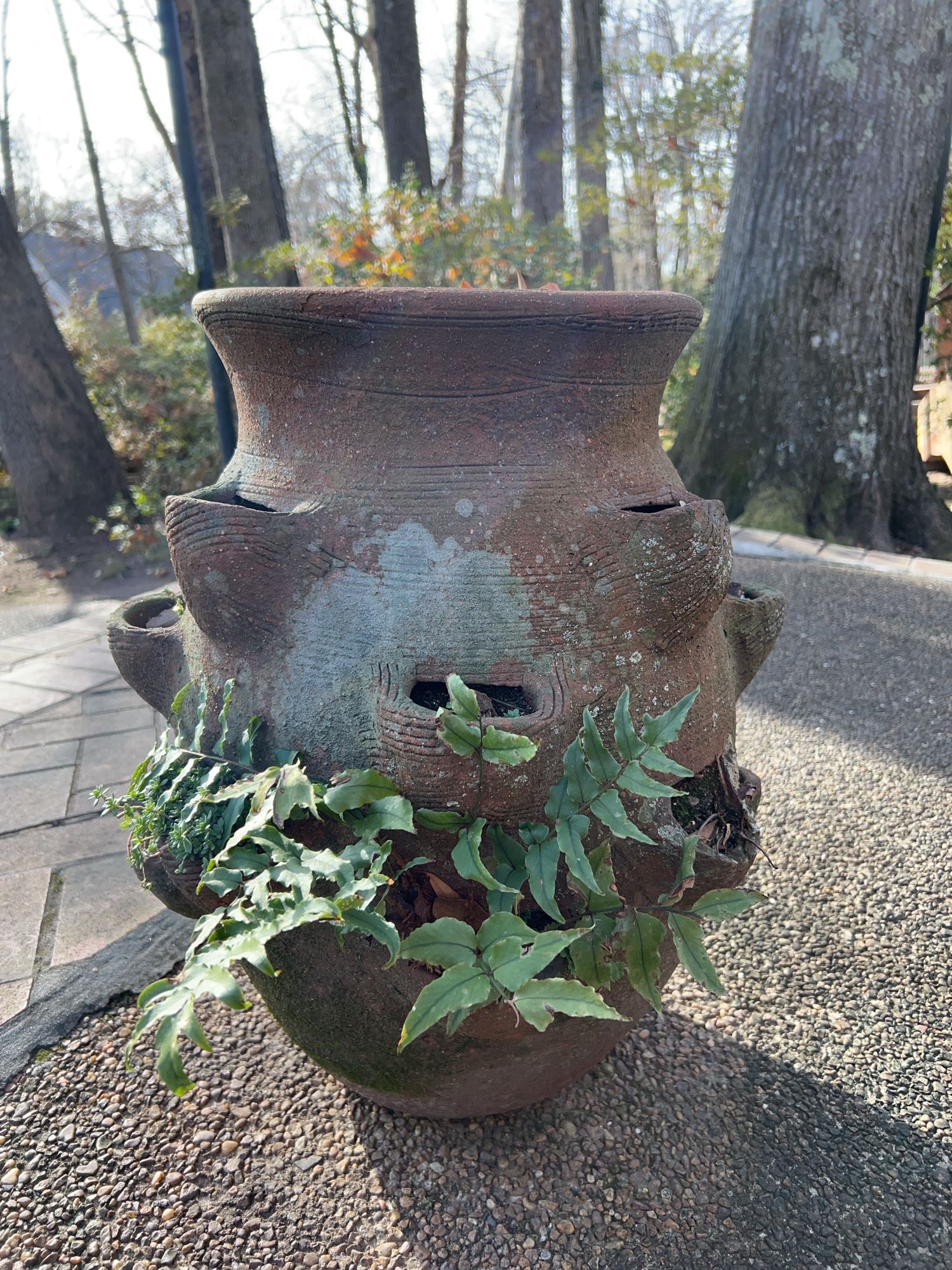 Terra cotta strawberry jar planter…..approx. 16”D x 22” tall