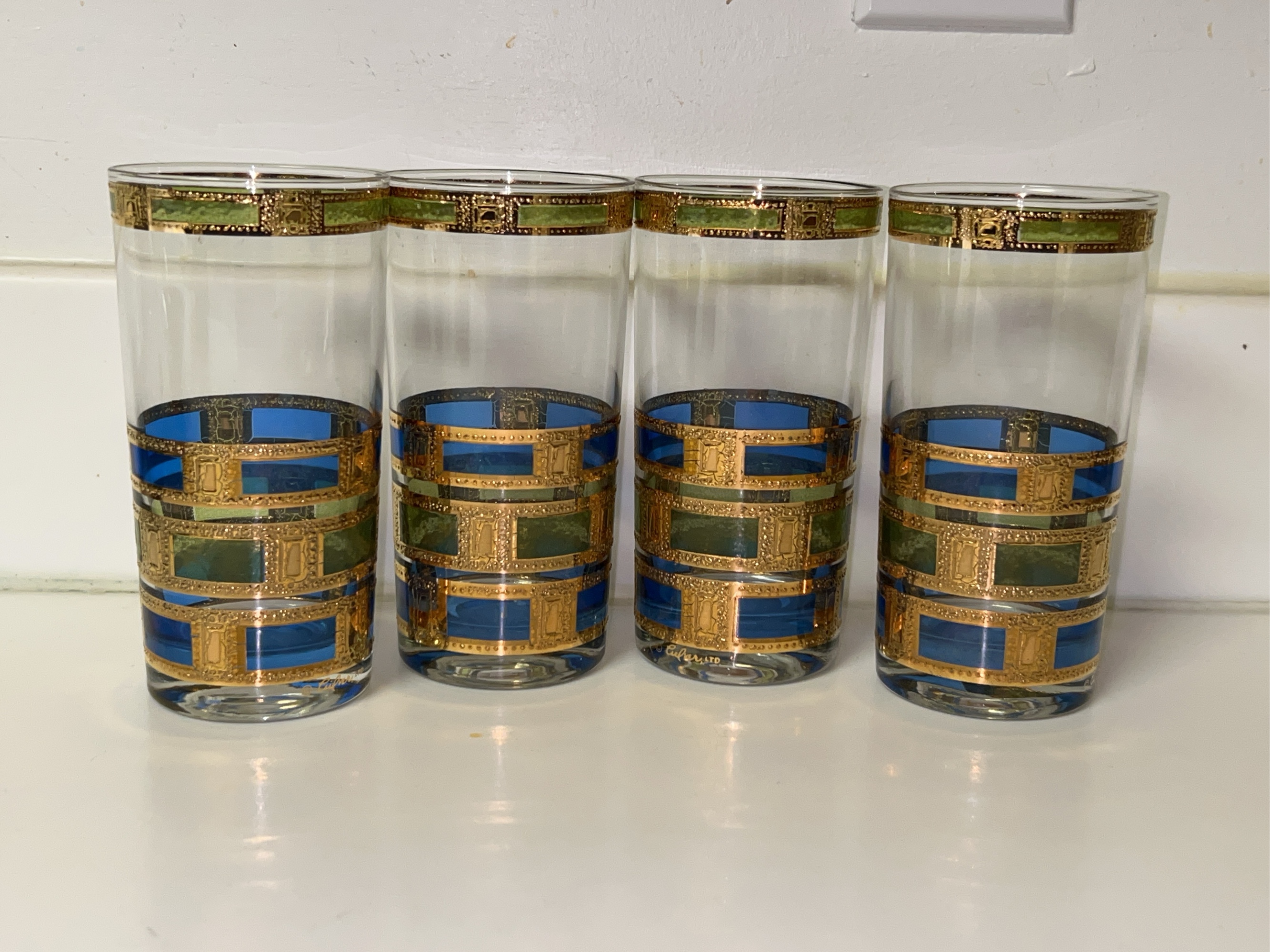 Set of (4) Vintage MCM Culver "Empress" Highball Stained Glass w/ 22k Gold Trim