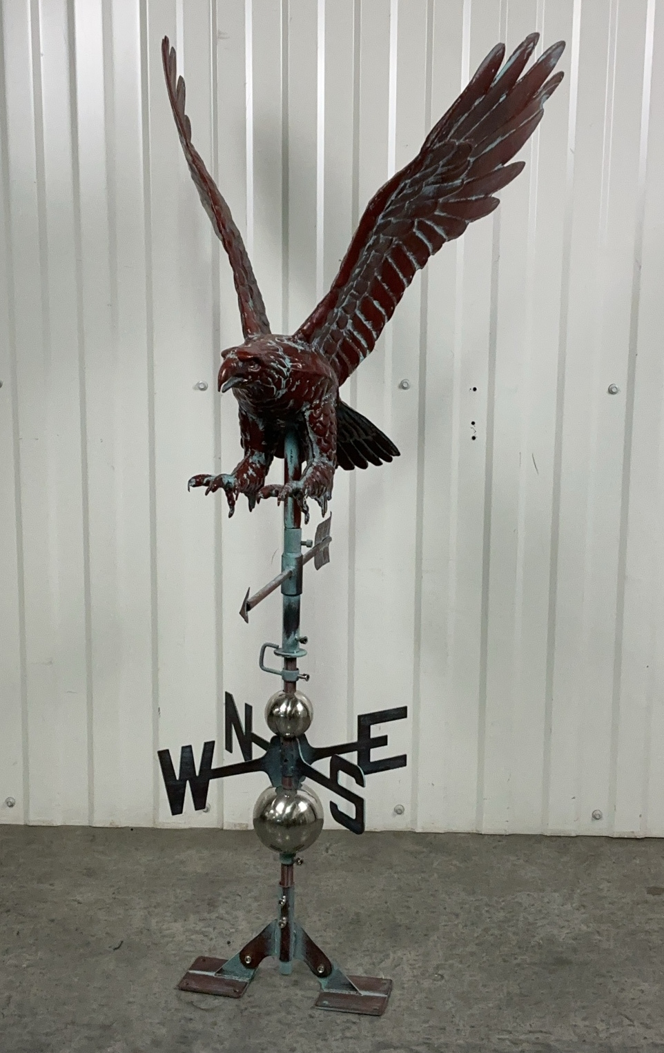 Decorative metal eagle weathervane sculpture. Dimensions: 42” X 19 1/2” X 18”. Functions correctly.