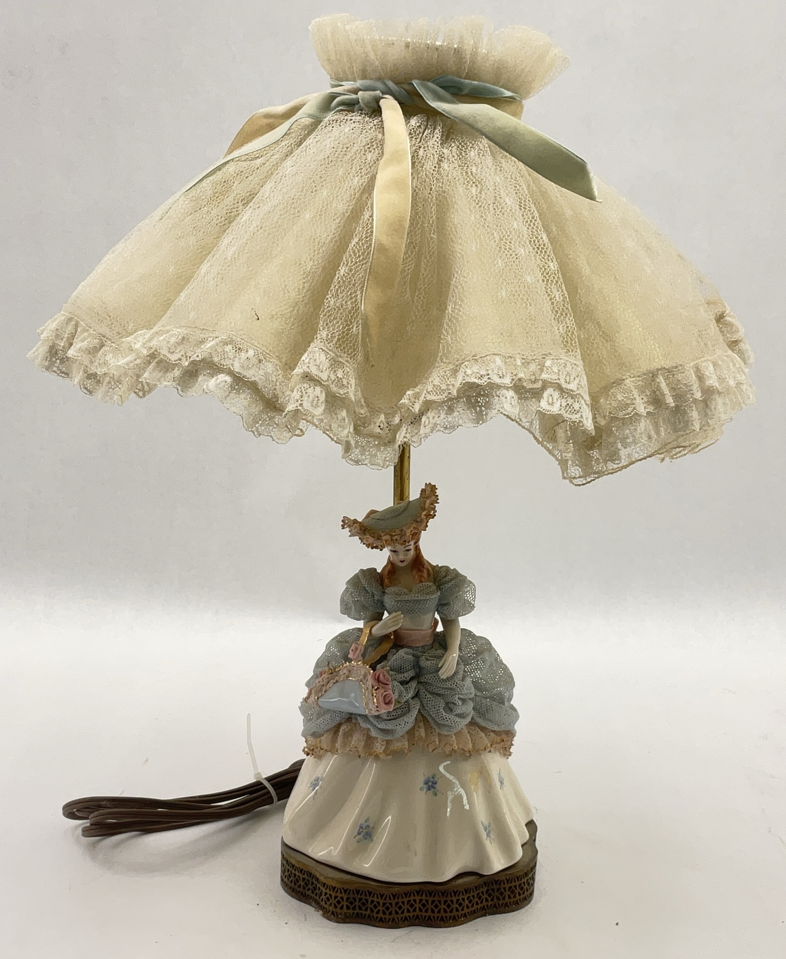 Vintage Porcelain Lady Figurine Lamp with Lace Shade