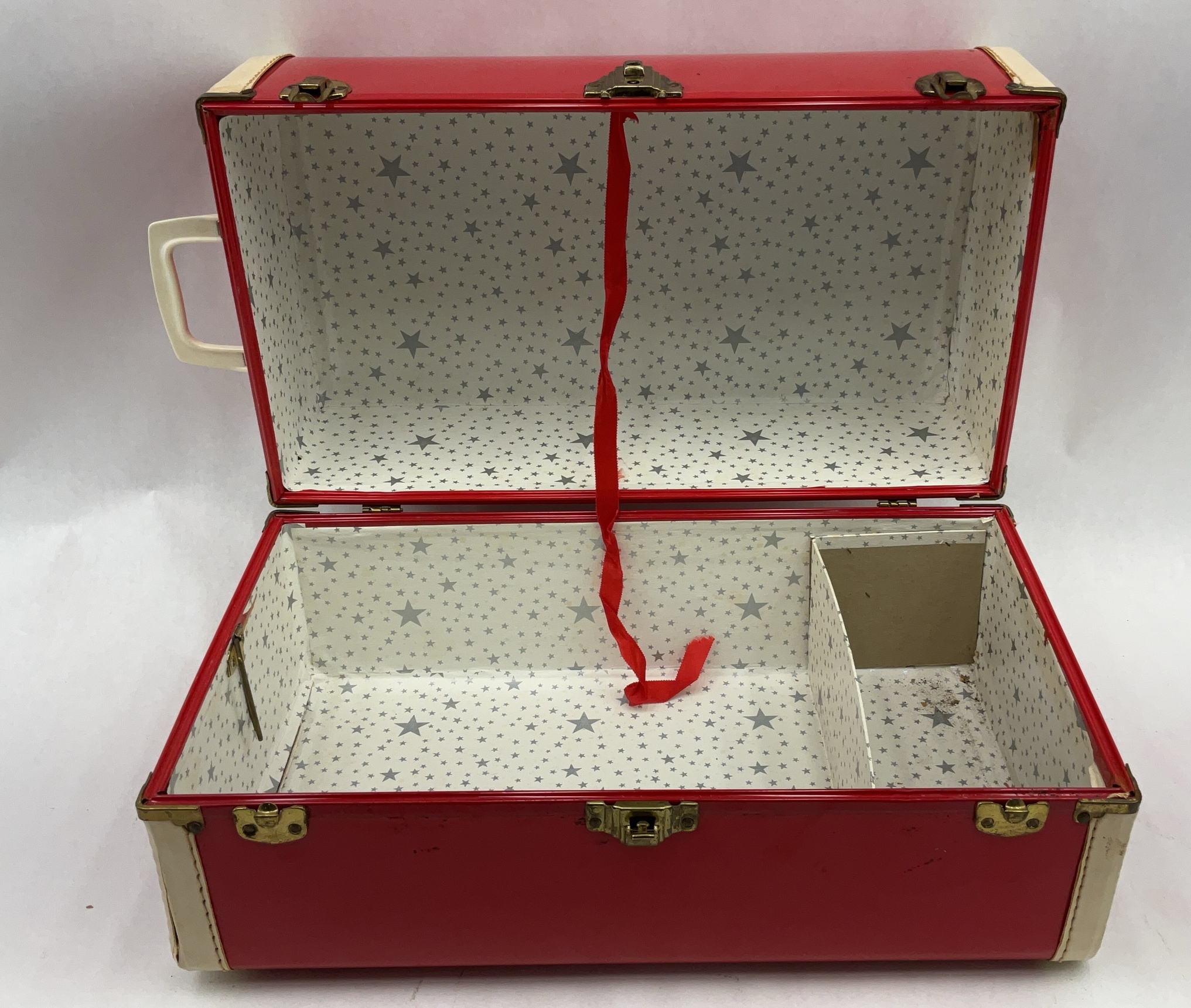 Vintage Red & Cream Doll Trunk with Star Liner