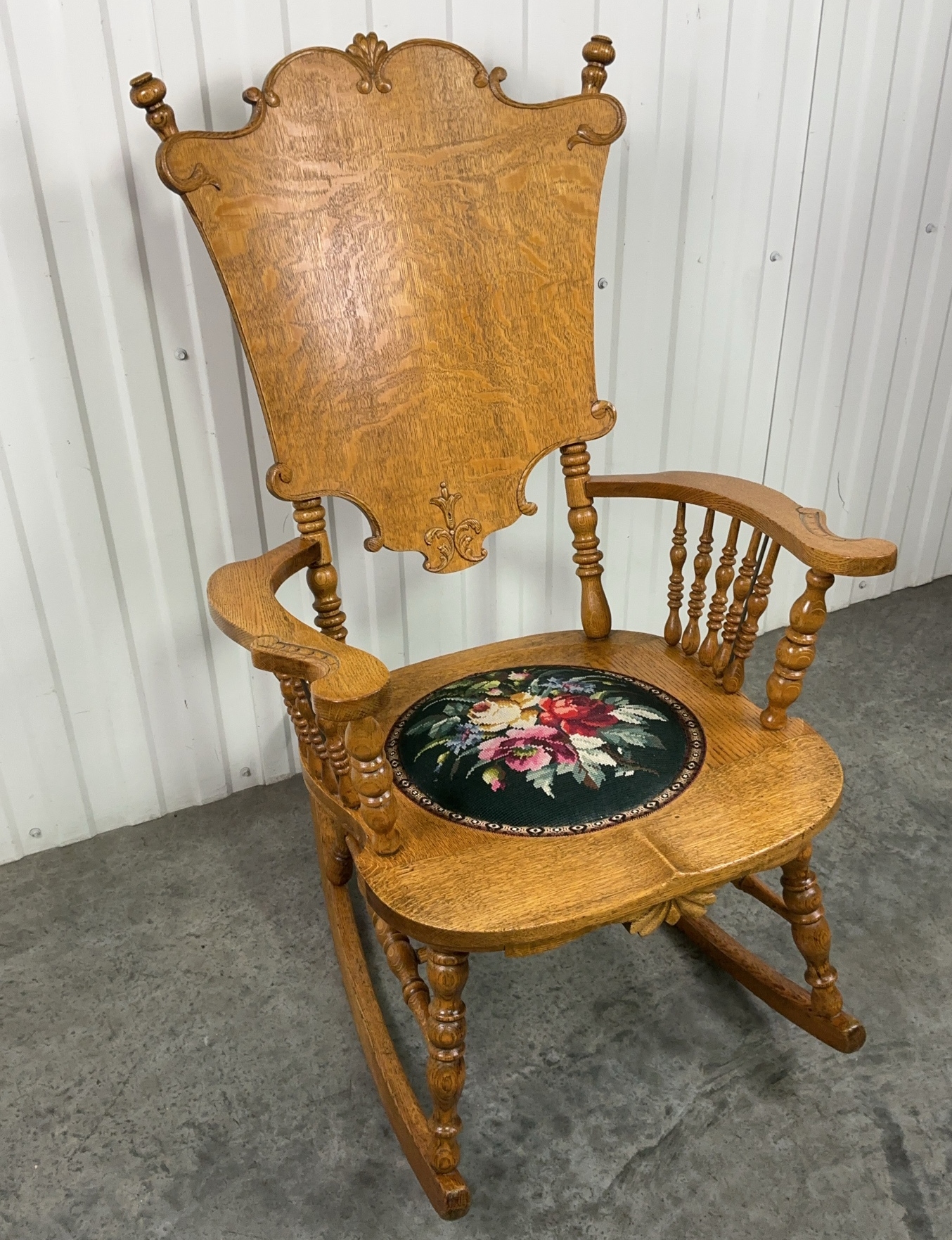 Antique Victorian Pressed Back Oak Rocking Armchair -Circa 1890-1910