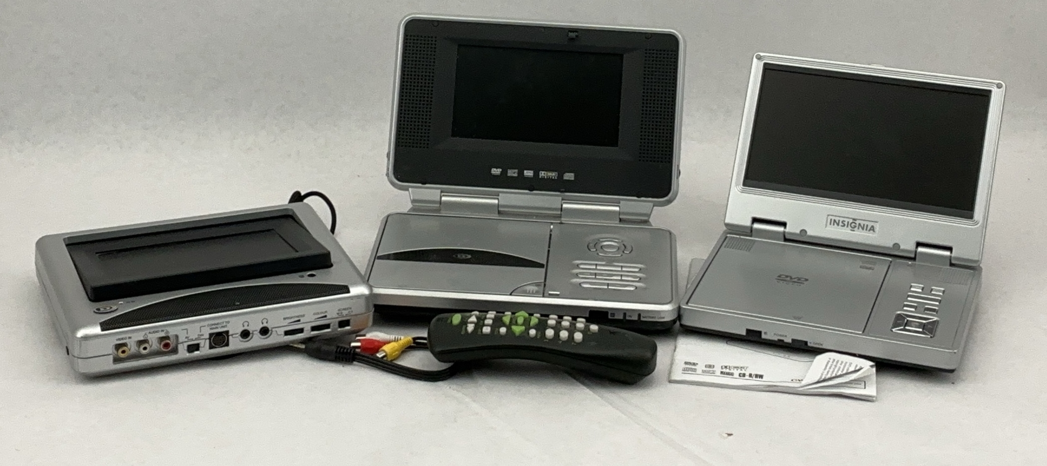 Lot of three Insignia portable DVD players. Used and untested. Only comes with one power cord.
