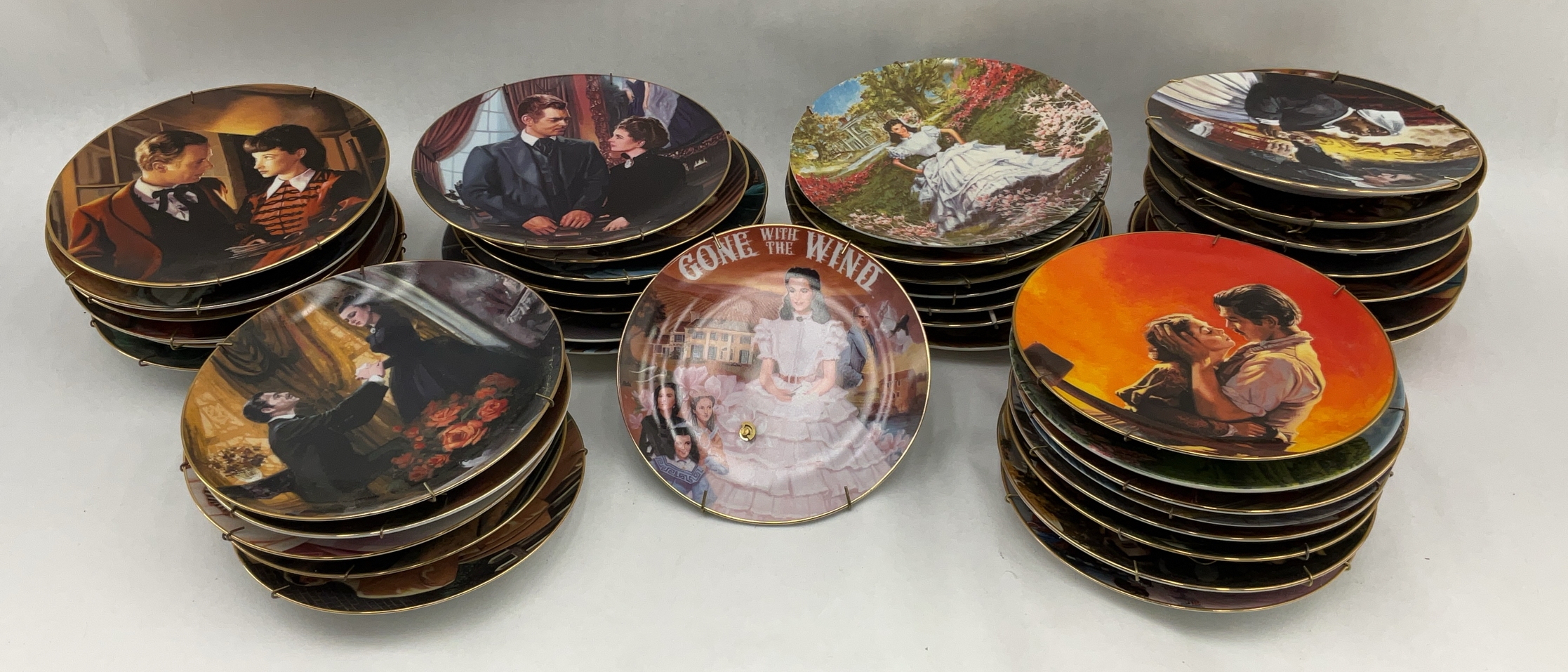 This collection features multiple decorative plates from the 'Gone With The Wind: Musical Treasures in Fine Porcelain' collection by Aleta Jenks. The plates showcase iconic scenes and characters from the classic film. Total of 40 plates, most with hangars.