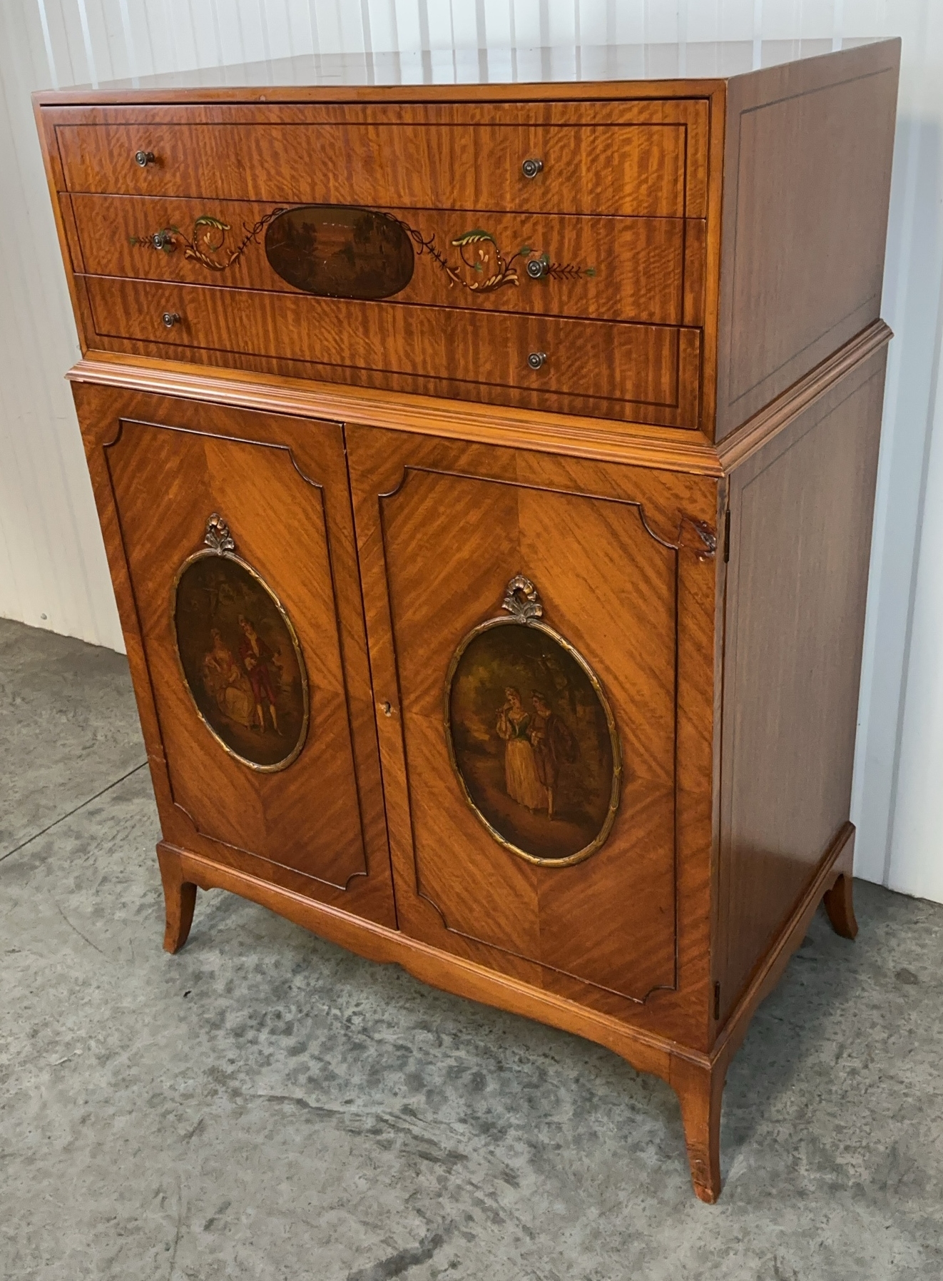 Vintage Art Deco Style Secretary Cabinet w/Hand Painted Detail