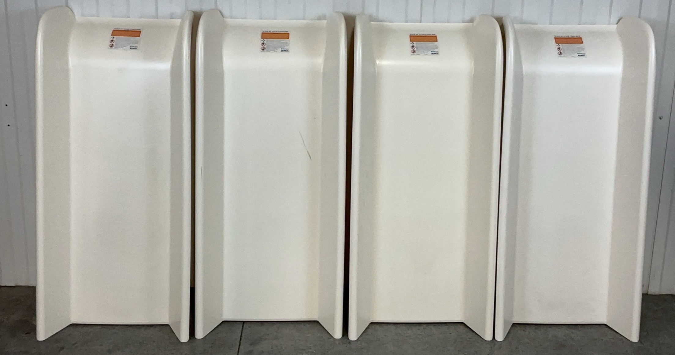 Four kids stairwell slides are offered in this lot. One slide is missing the back rubber piece. Each slide measures approximately 42 inches x 19 1/2 inches x 9 inches.