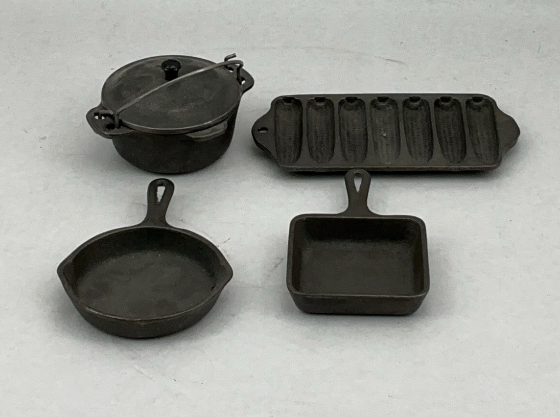 Limited edition 100 year anniversary Wagner’s Original Cast Iron Cookware set. This used set includes a pot (5 1/2” X 5 1/2” X 2 1/2”), skillet, square pan, and cornbread pan.