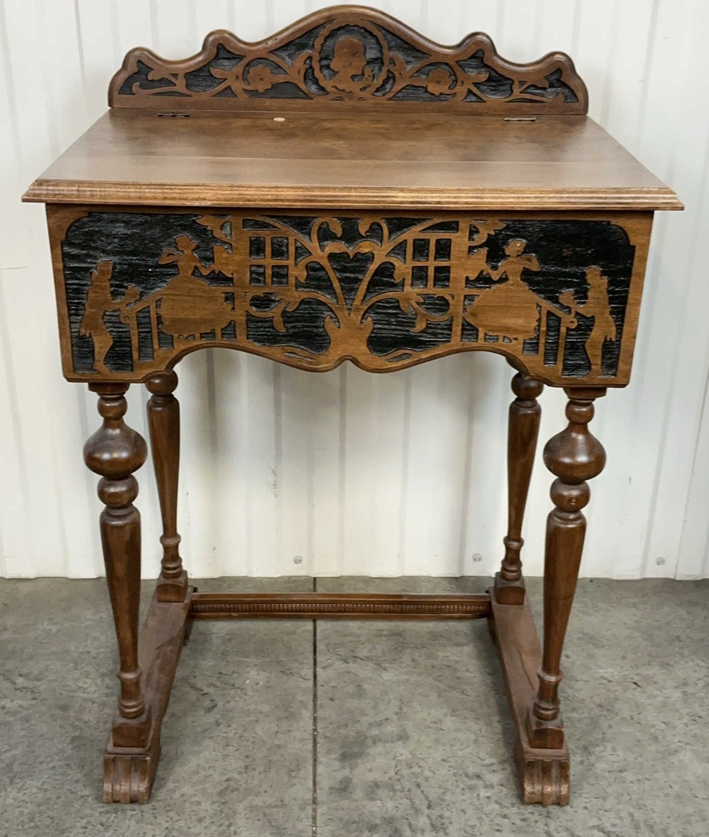 Antique Pierced Fretwork Sewing Stand w/Lift Top Storage