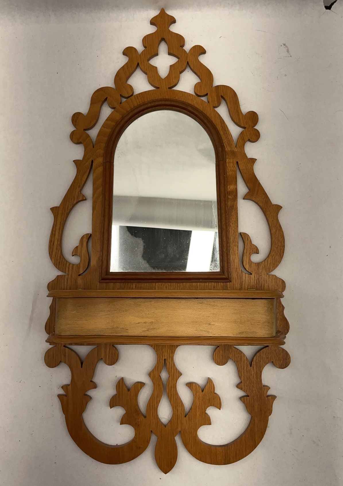 Hand Crafted Pine Victorian Style Wall Mirror with Shelf