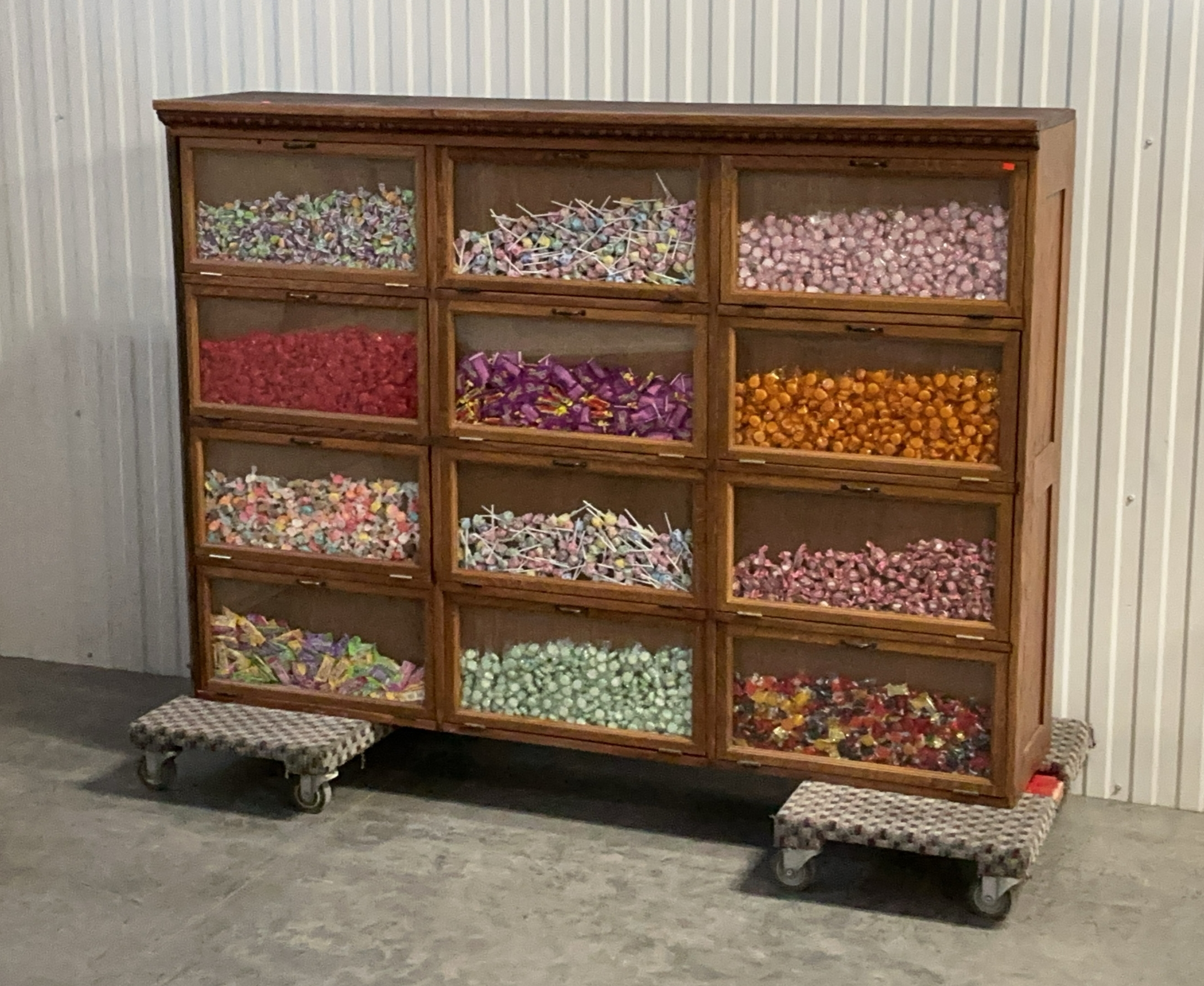 This fixture is believed to have originated from the Gallatin Valley, Montana area, a region that experienced significant growth during the late 19th and early 20th centuries following the arrival of the Northern Pacific Railway in the 1880s. Towns such as Bozeman, Belgrade, and Manhattan supported numerous general stores, mercantiles, and confectioneries that served both local residents and travelers. During this era, candy was sold loose by weight from large glass display cases, with popular offerings including peppermint sticks, lemon drops, horehound drops, licorice, saltwater taffy, and various hard candies imported from eastern manufacturers. Children would press their faces against the glass to admire the colorful assortments, while proprietors used long scoops to measure portions into paper sacks.