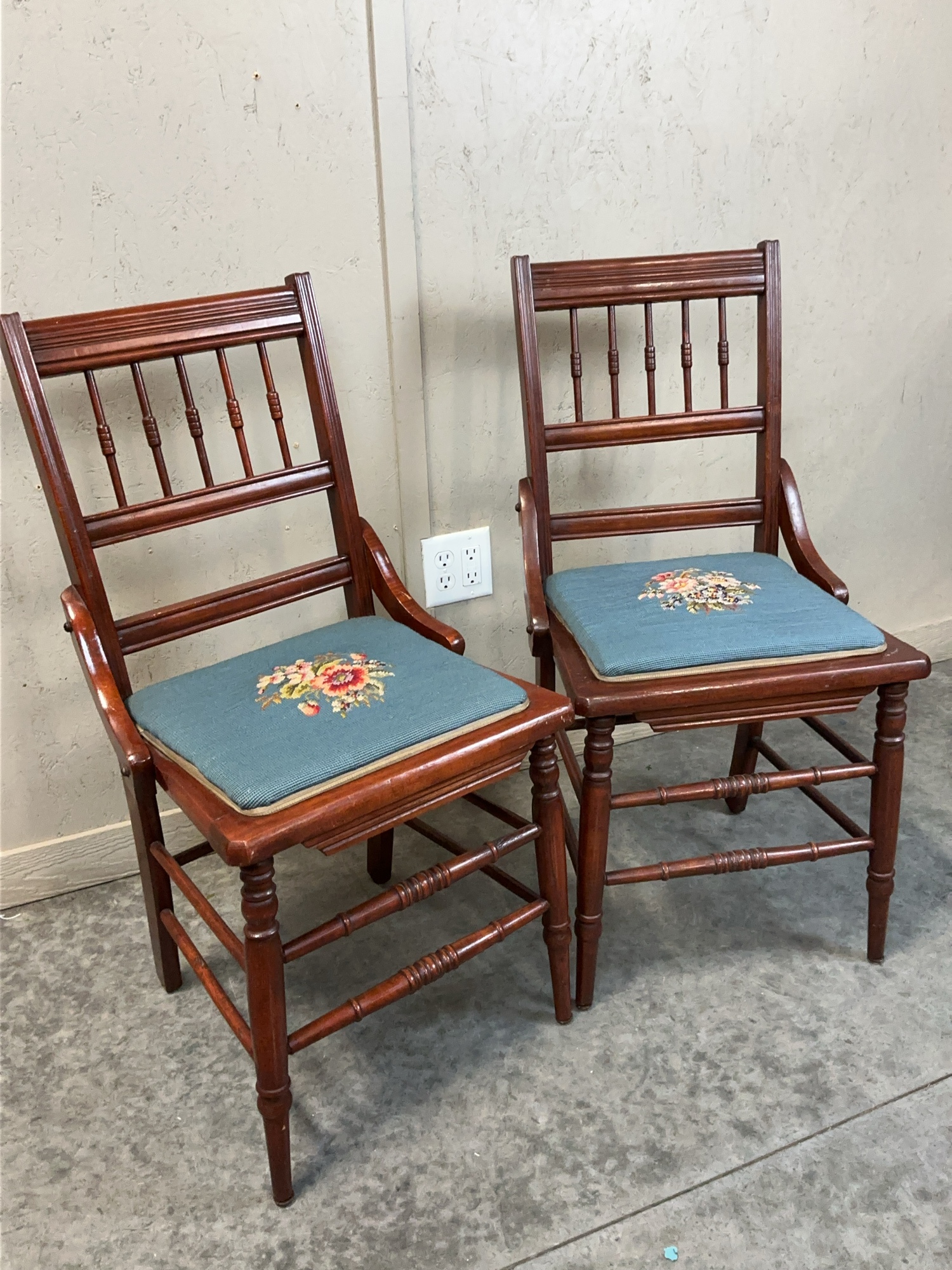 Pair of Victorian Mahogany Side Chairs with Needlepoint Seats