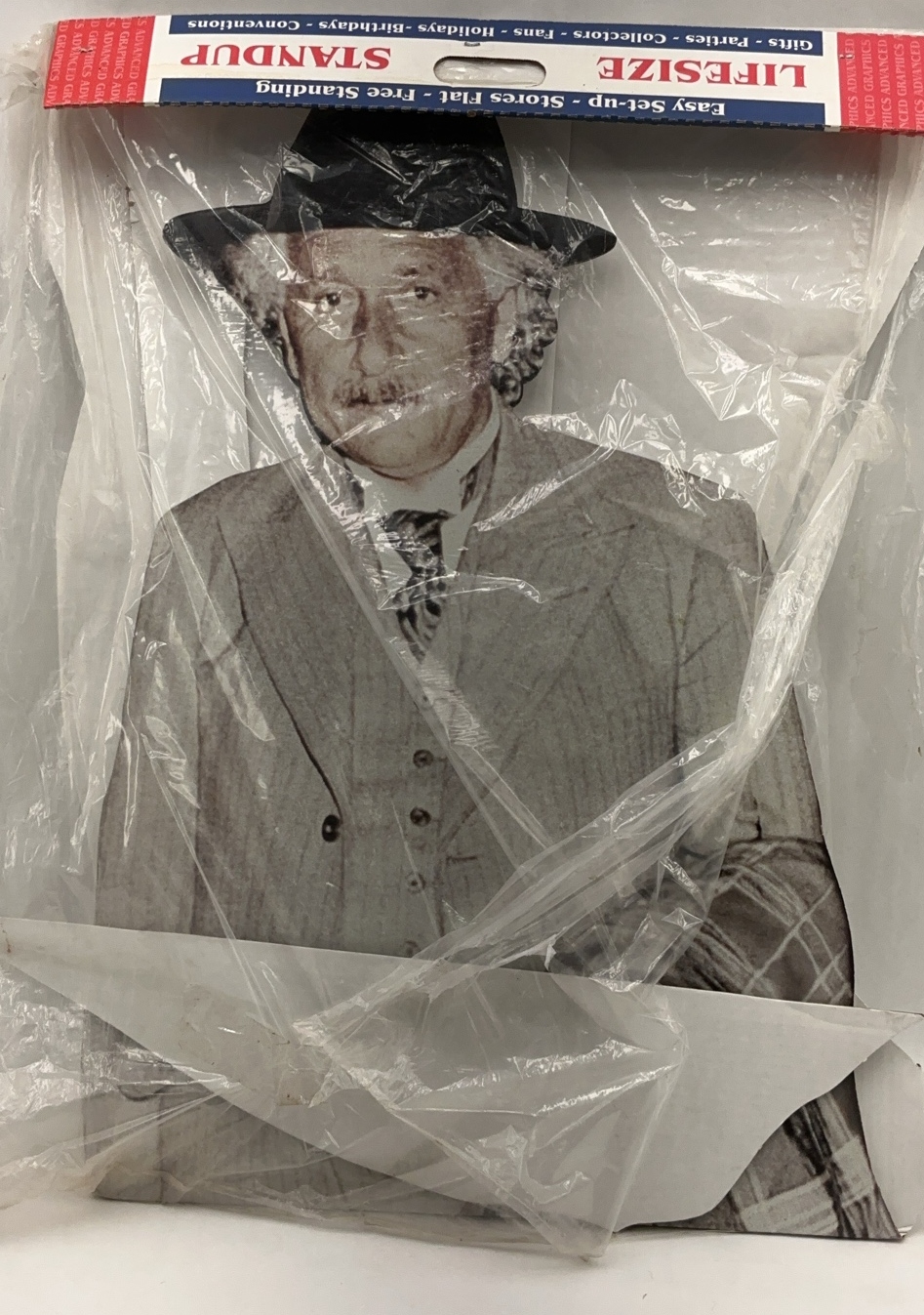 Life-size Albert Einstein cutout. Used. Measures 38” X 20”.