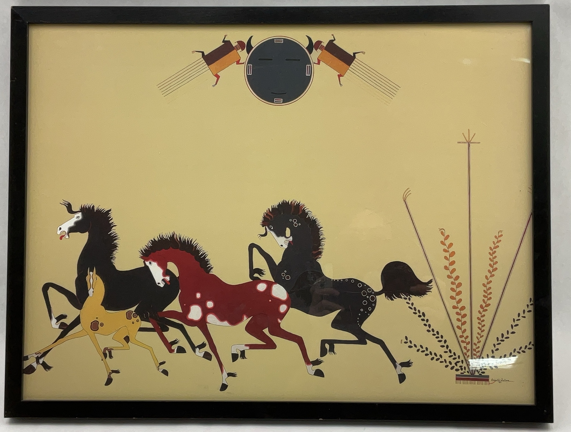 Like new painting. Painting measures 19 1/2” X 20 1/2”. Gerald Nailor “Nevada Horses” painting in frame.
