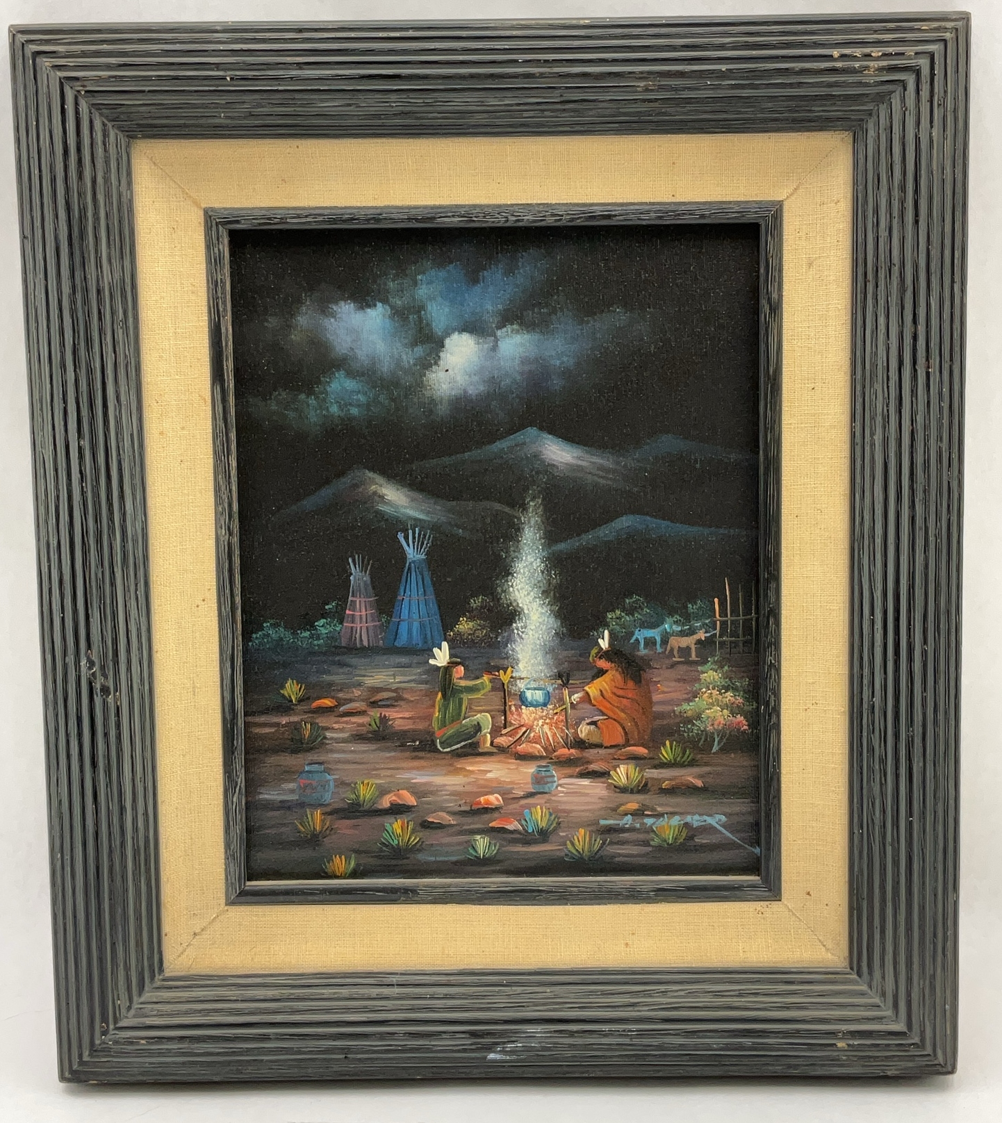 Framed Native American Painting - Hecho en Mexico 13 x 15