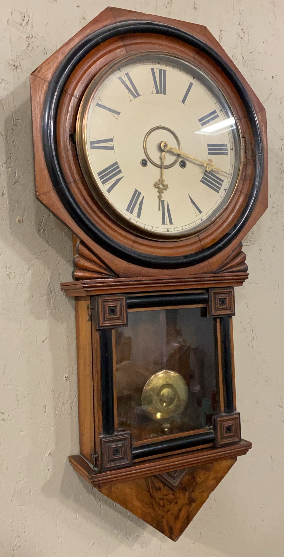 Victorian Walnut & Ebonized Drop Octagon Clock