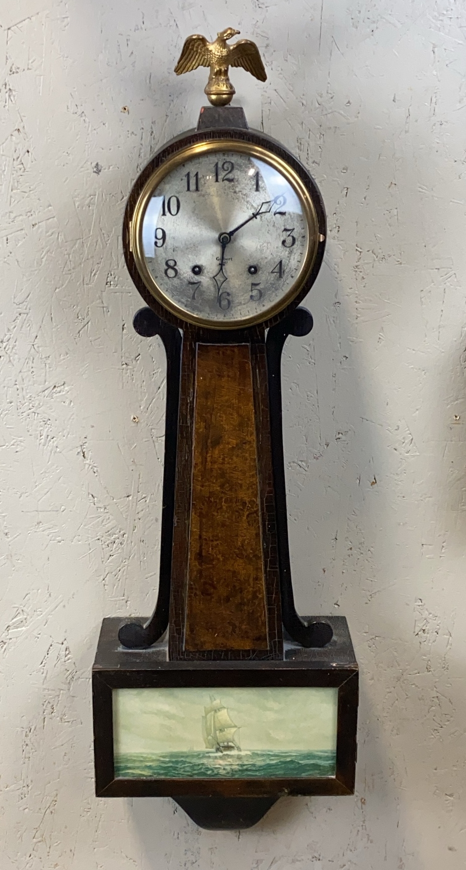Gilbert Banjo Clock w/ Eagle & Ship Painting