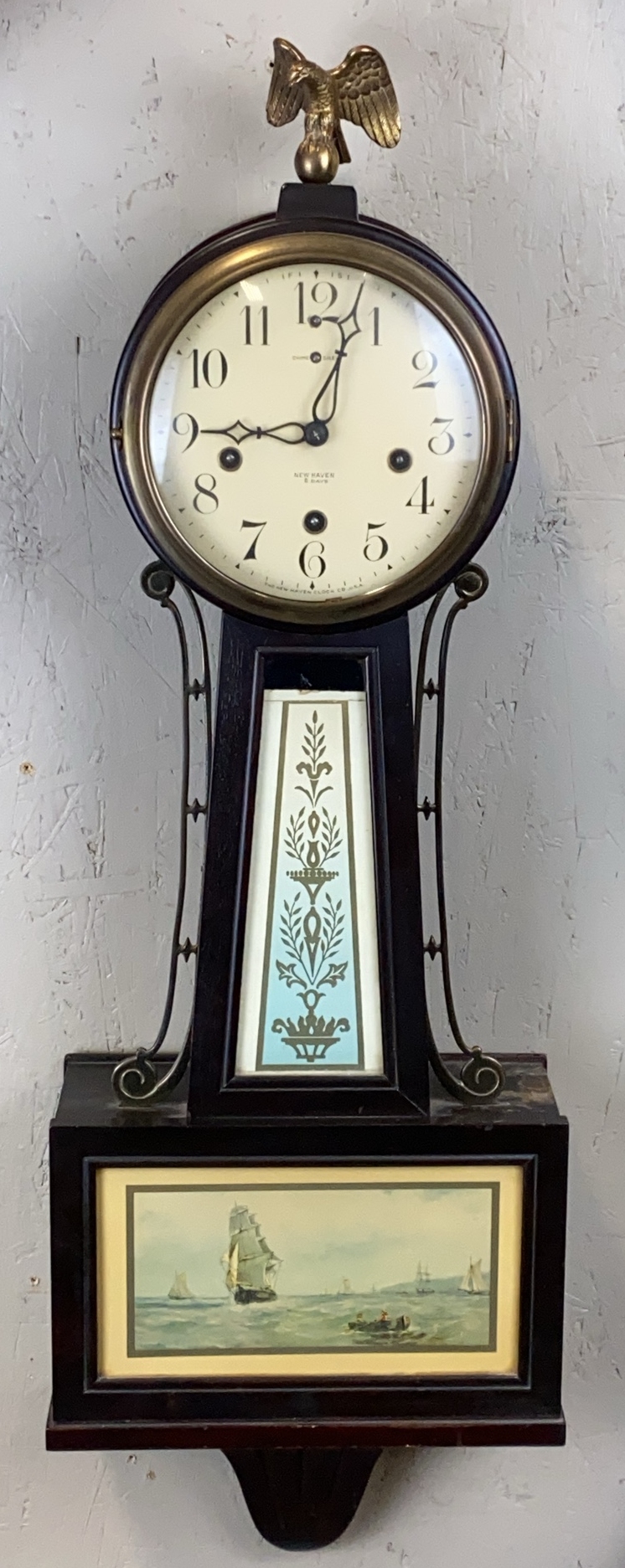 New Haven 8-Day Banjo Clock w/ Eagle & Ship Art
