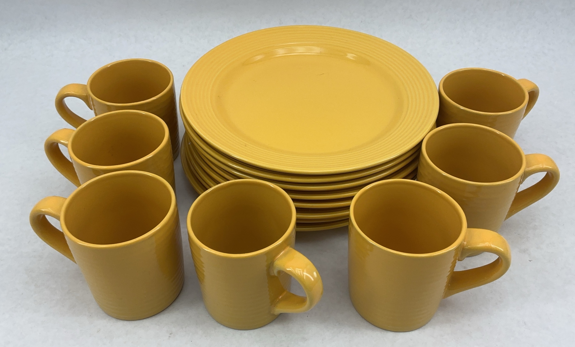 Eight plates and seven mugs. Royal Norfolk, China.