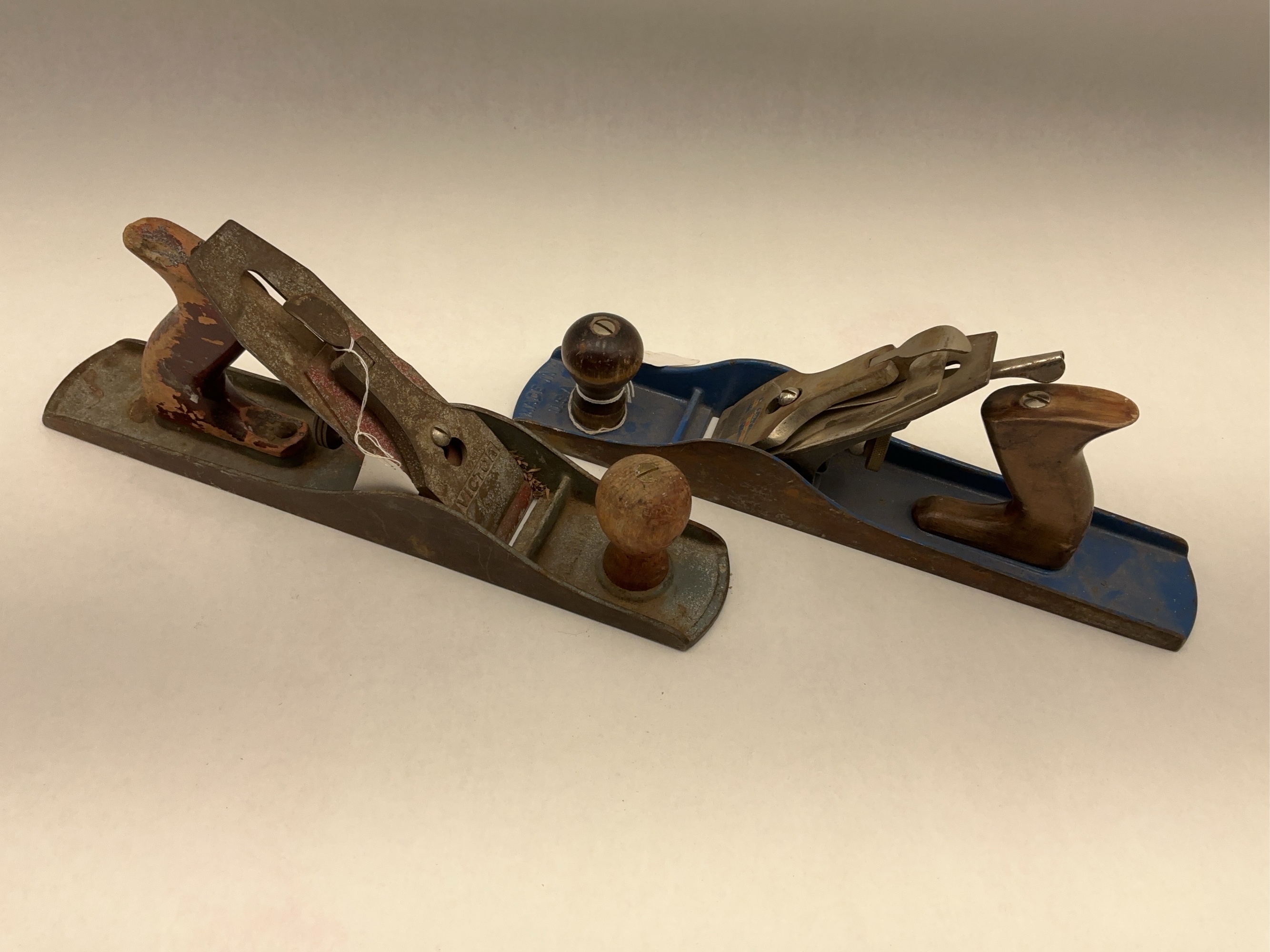 Two hand planes, including one Victor plane and one L. Tillman plane. Both show signs of wear and rust in spots.